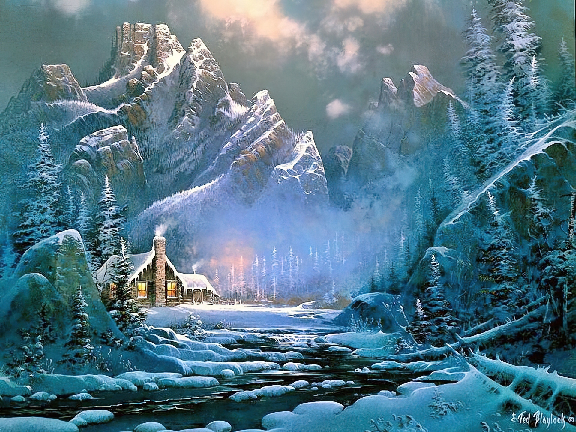 Edytor tapety: Zima, Góry, Malarstwo