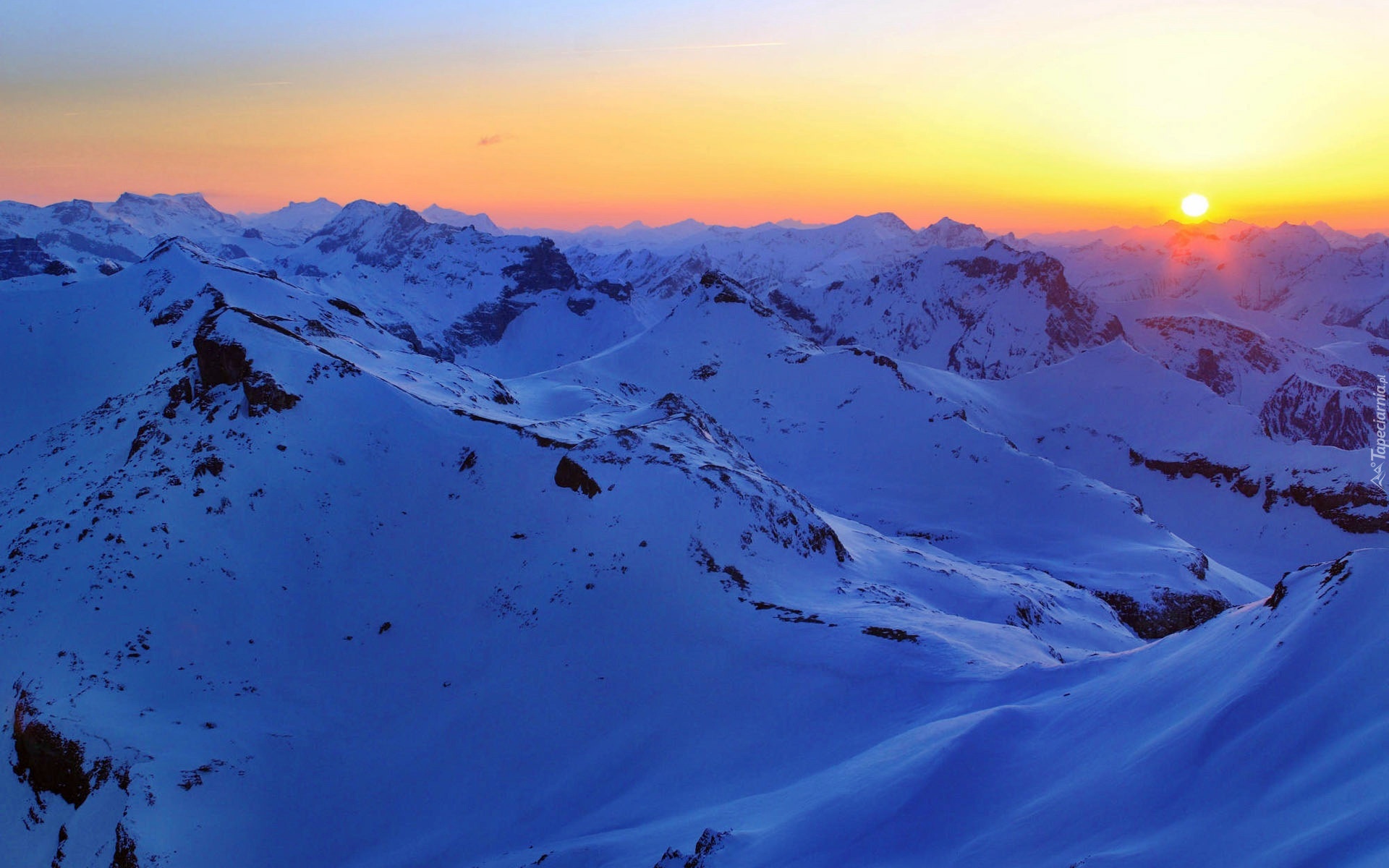 Edytor tapety: Góry, Śnieg, Zachód, Słońca