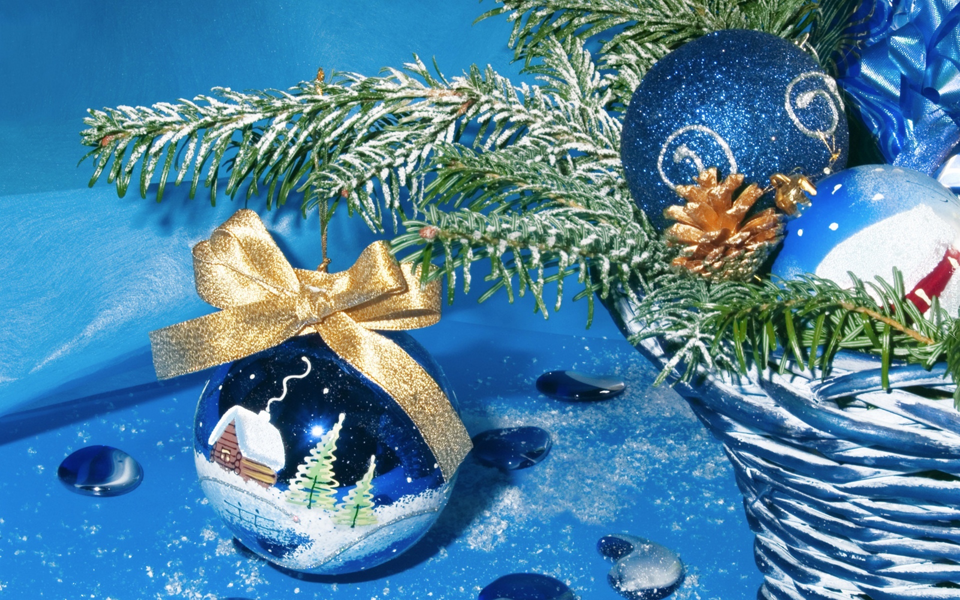 Edytor tapety: Dekoracja, Świąteczna, Bombki, Kosz, Gałąź