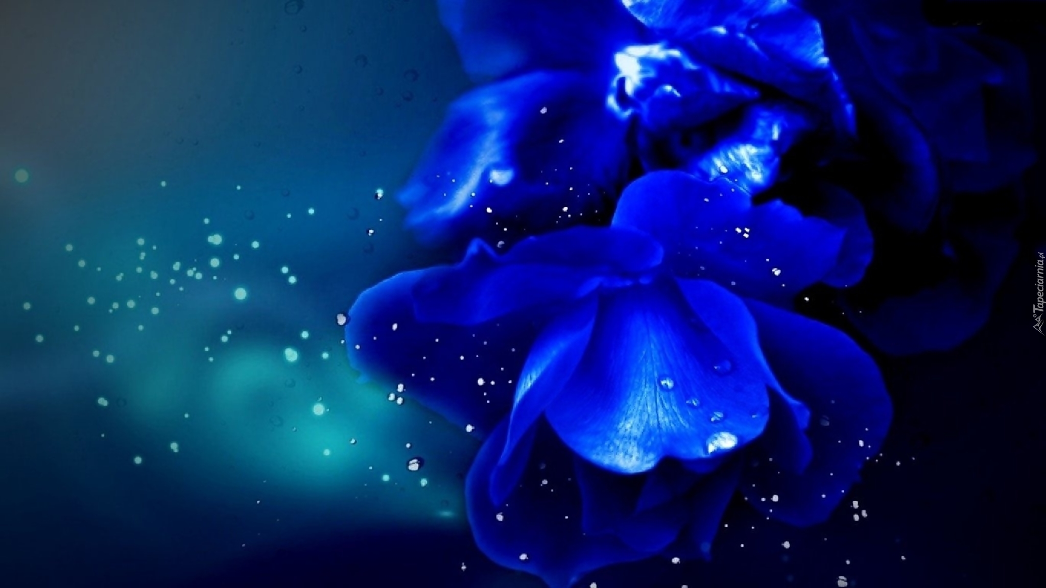Edytor tapety: Niebieski, Kwiat, Krople, Wody