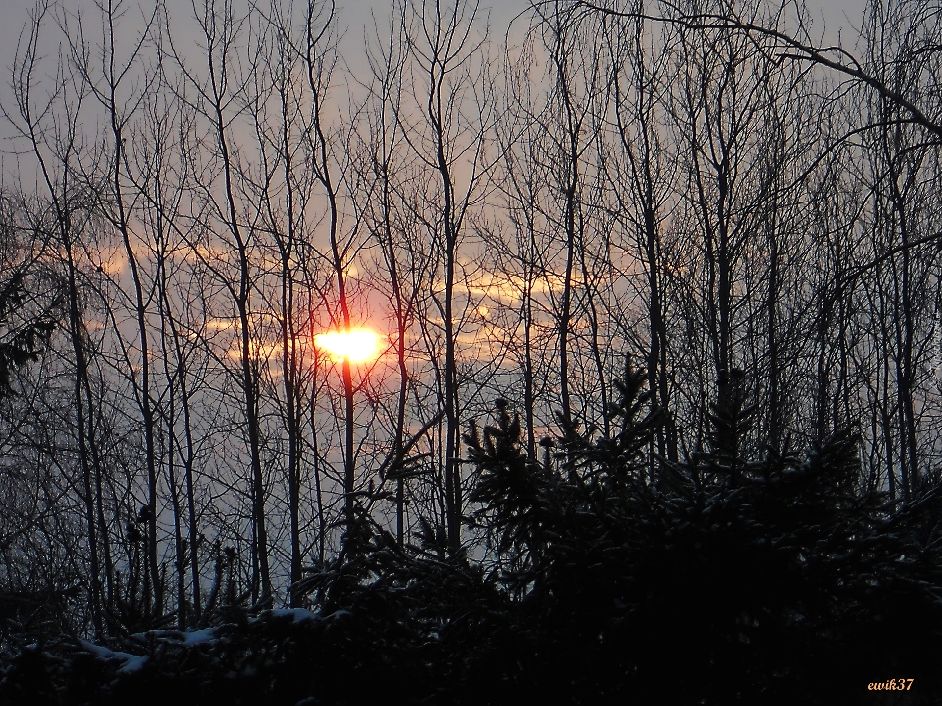 Edytor tapety: Zima, Ośnieżone, Drzewa, Słońce