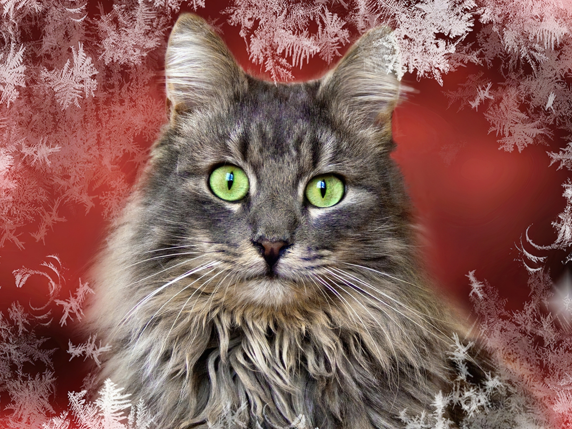 Edytor tapety: Kot, Zielone, Oczy, Płatki, Śniegu