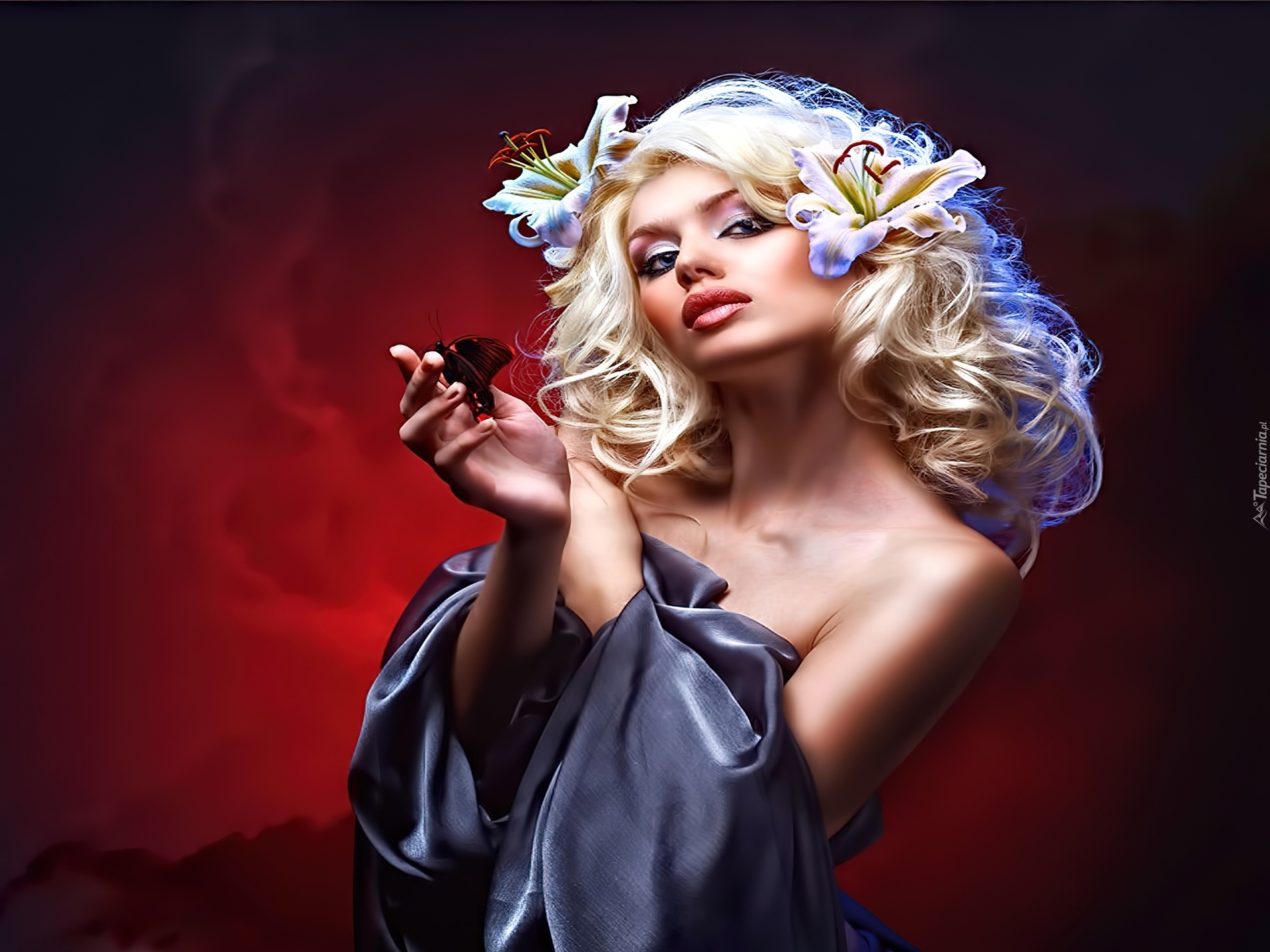 Edytor tapety: Kobieta, Spojrzenie, Motyl
