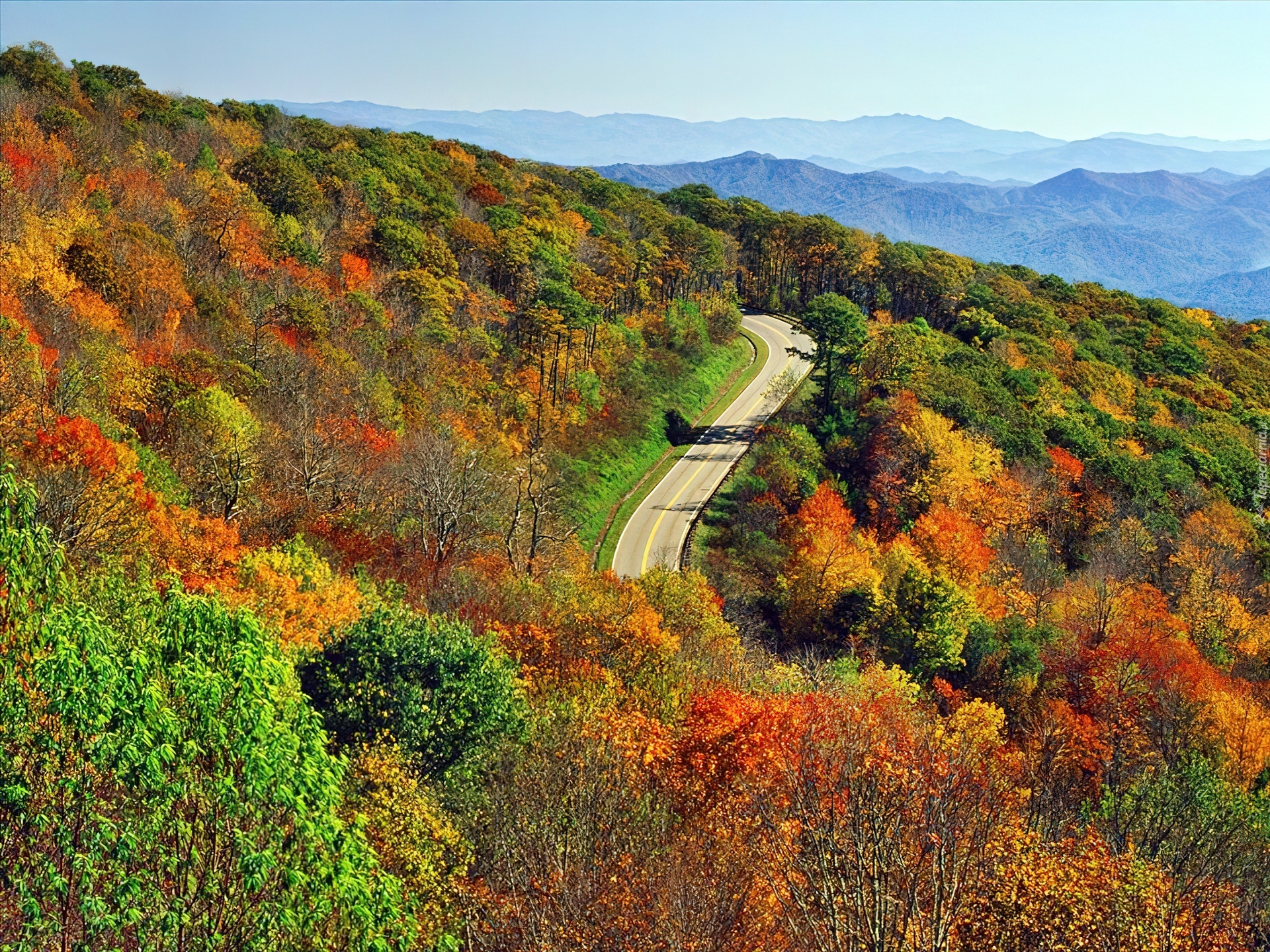 Edytor tapety: Kolorowe, Drzewa, Droga, Jesień, Lasy