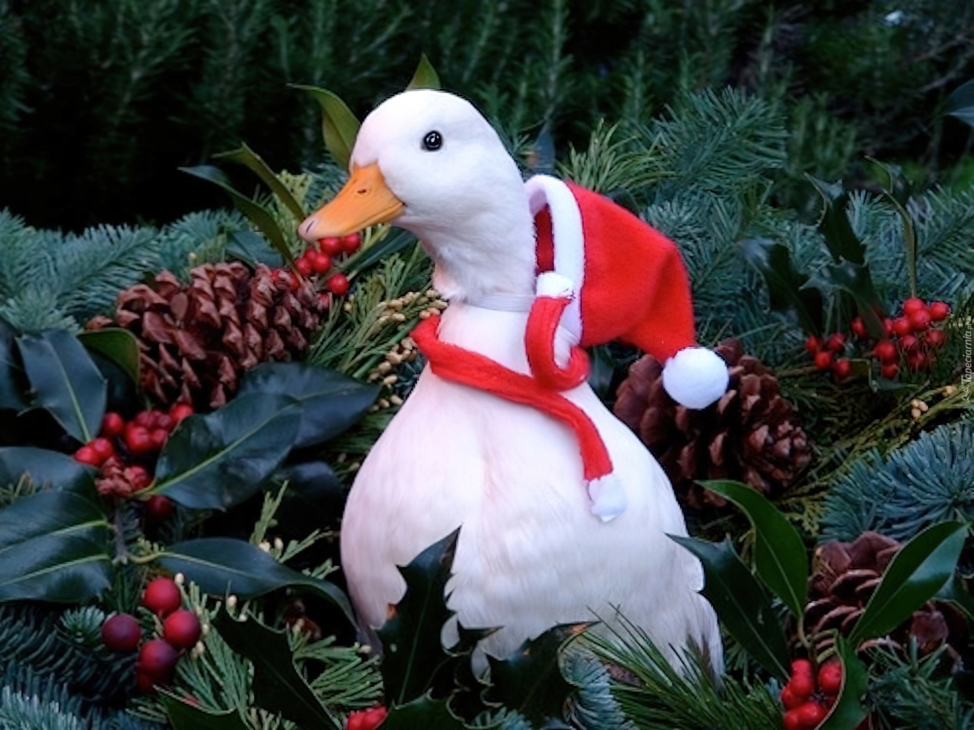 Edytor tapety: Biała, Kaczka, Czapka, Mikołaja