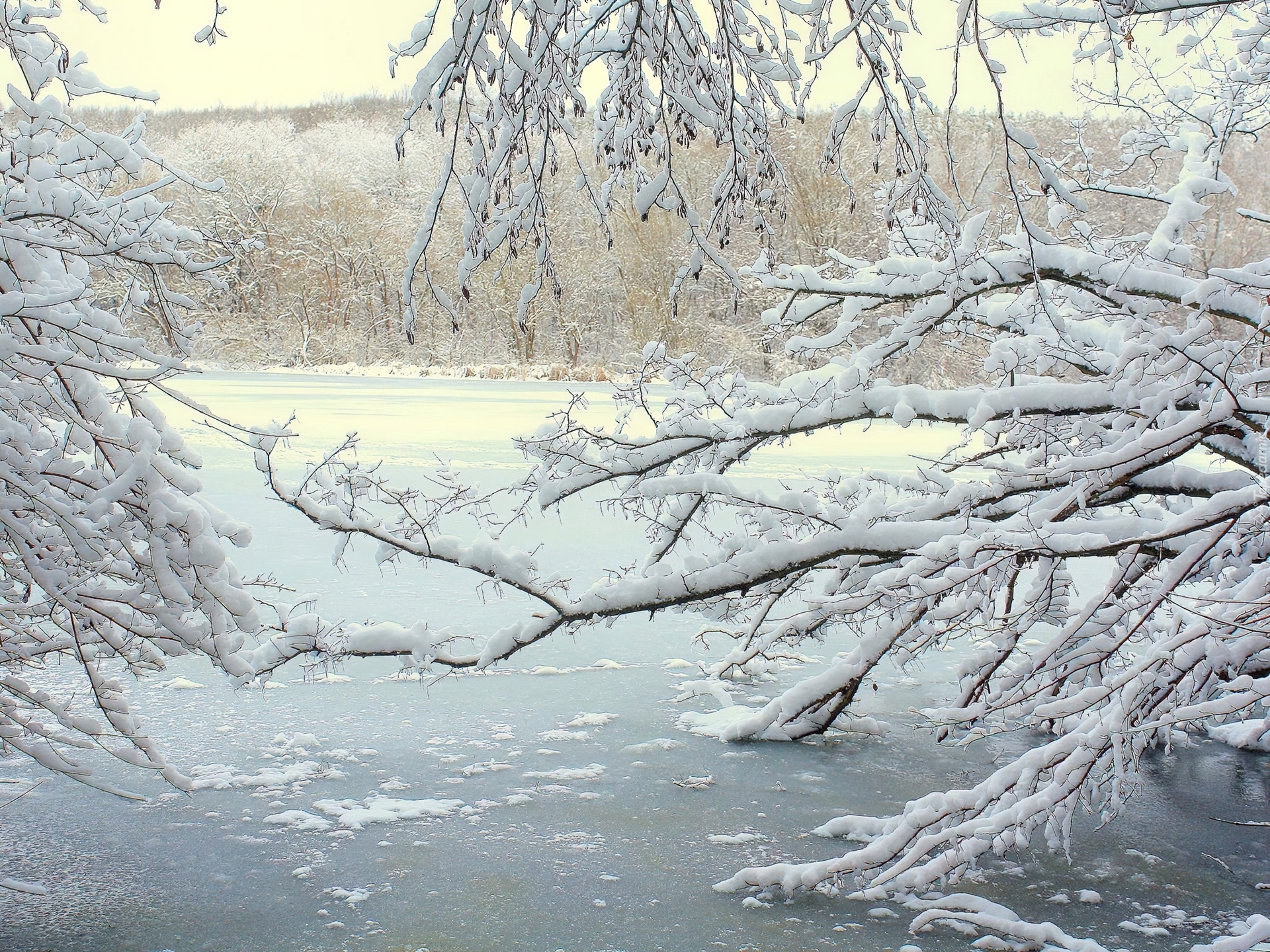 Edytor tapety: Zamarznięta, Rzeka, Gałęzie, Drzew