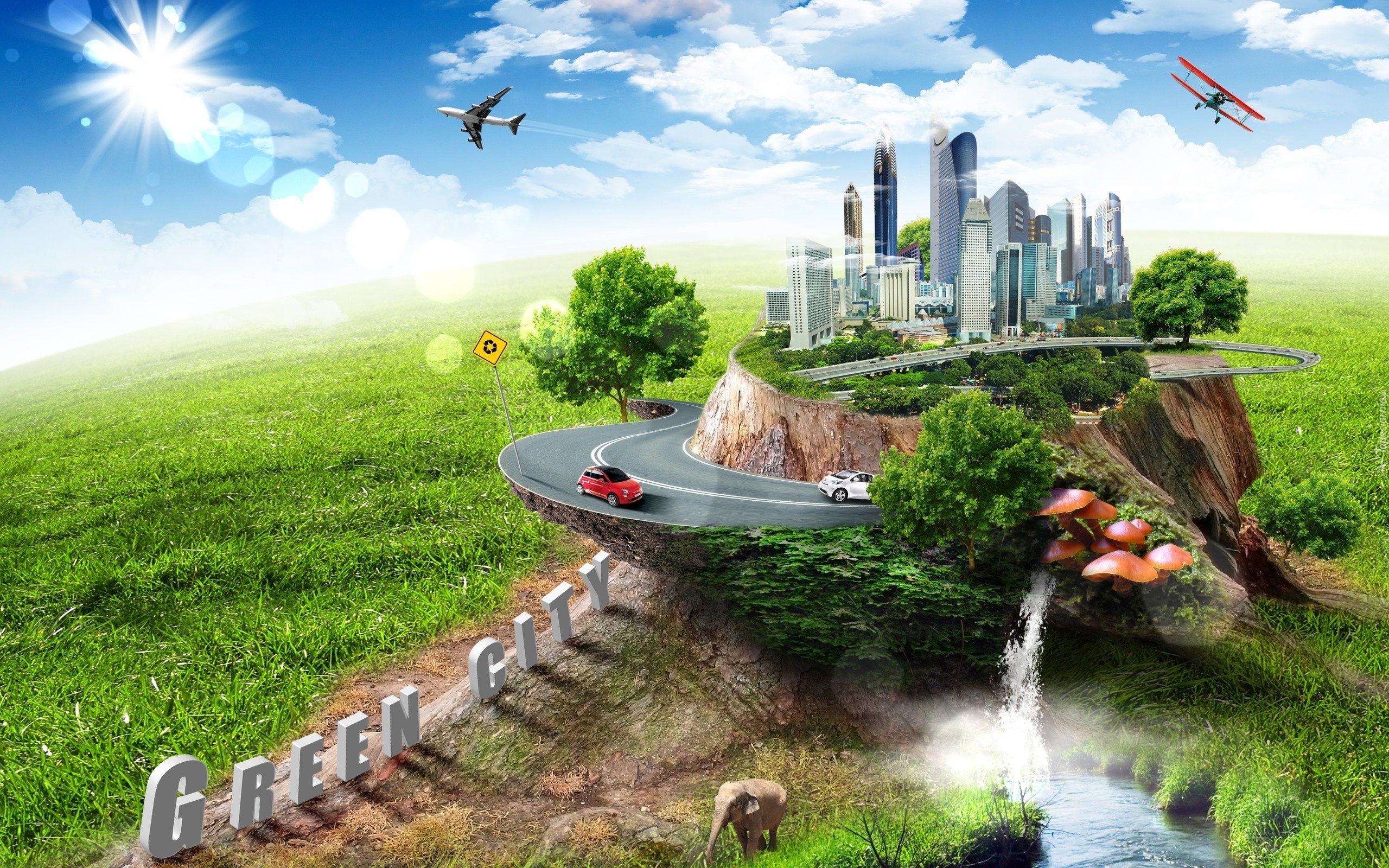 Edytor tapety: Zielone, Osiedle, Droga, Samoloty, Grzyby, Drzewa