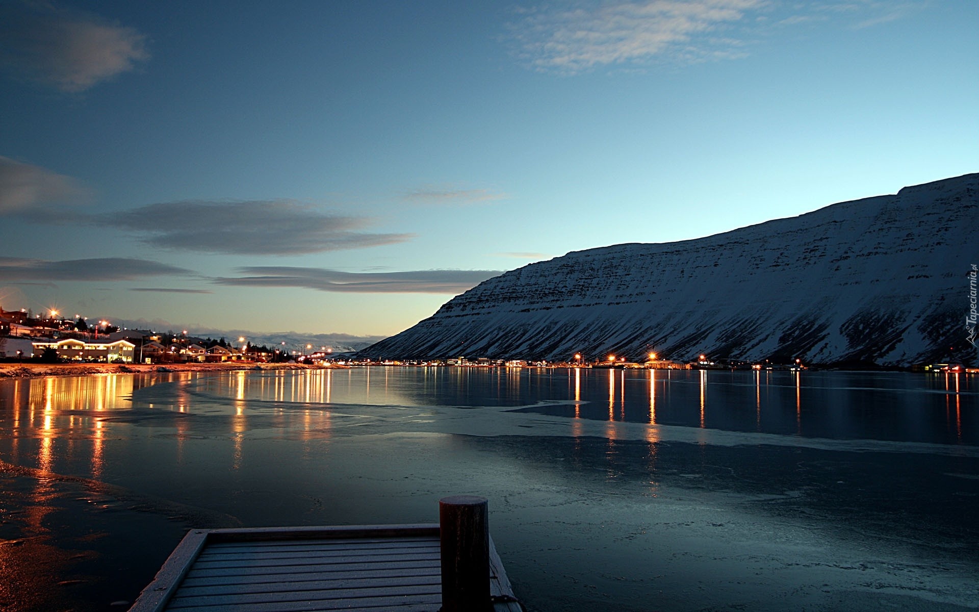 Edytor tapety: Noc, Oświetlone, Miasto, Woda