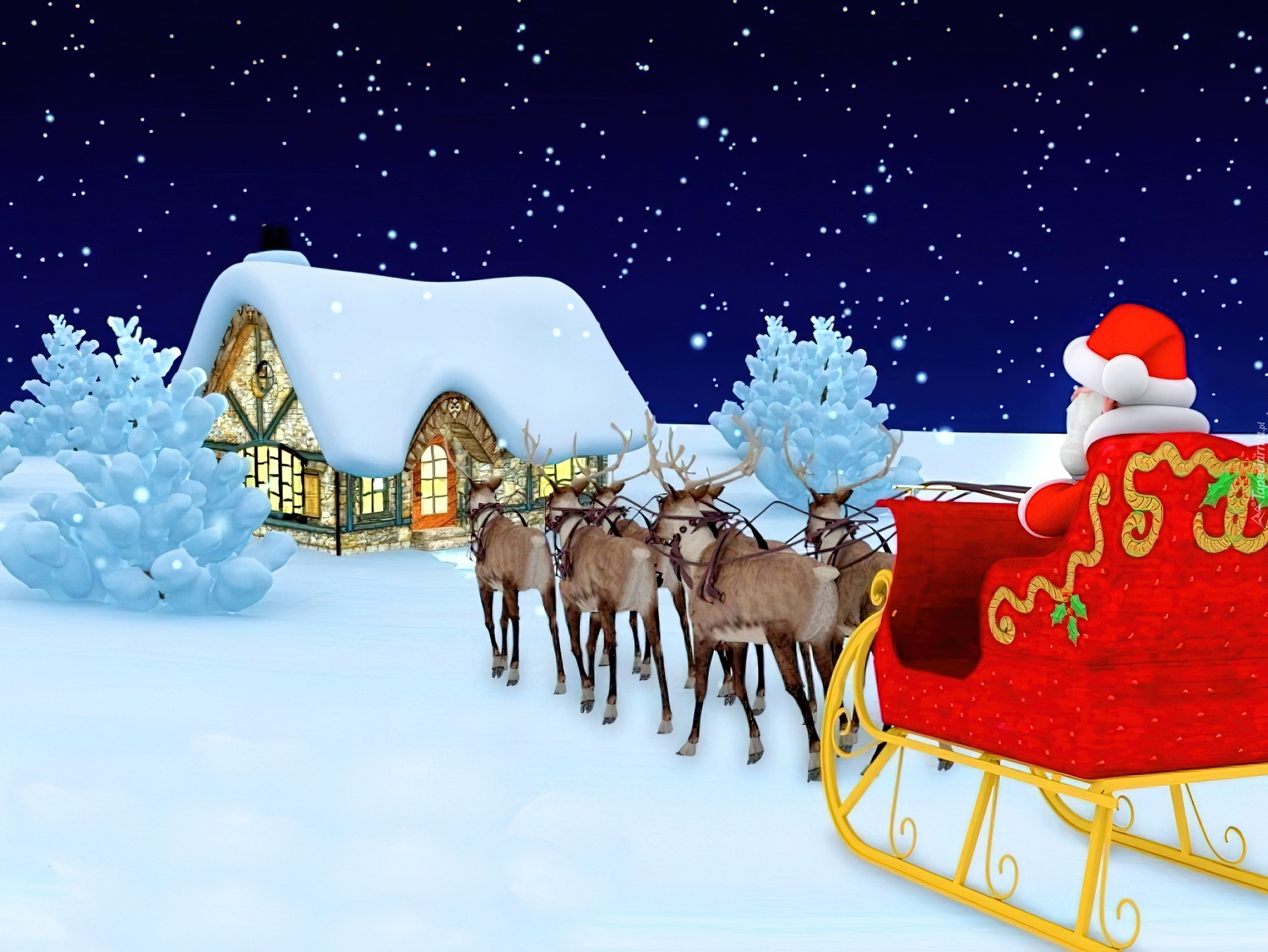 Edytor tapety: Mikołaj, Sanie, Domek, Zima
