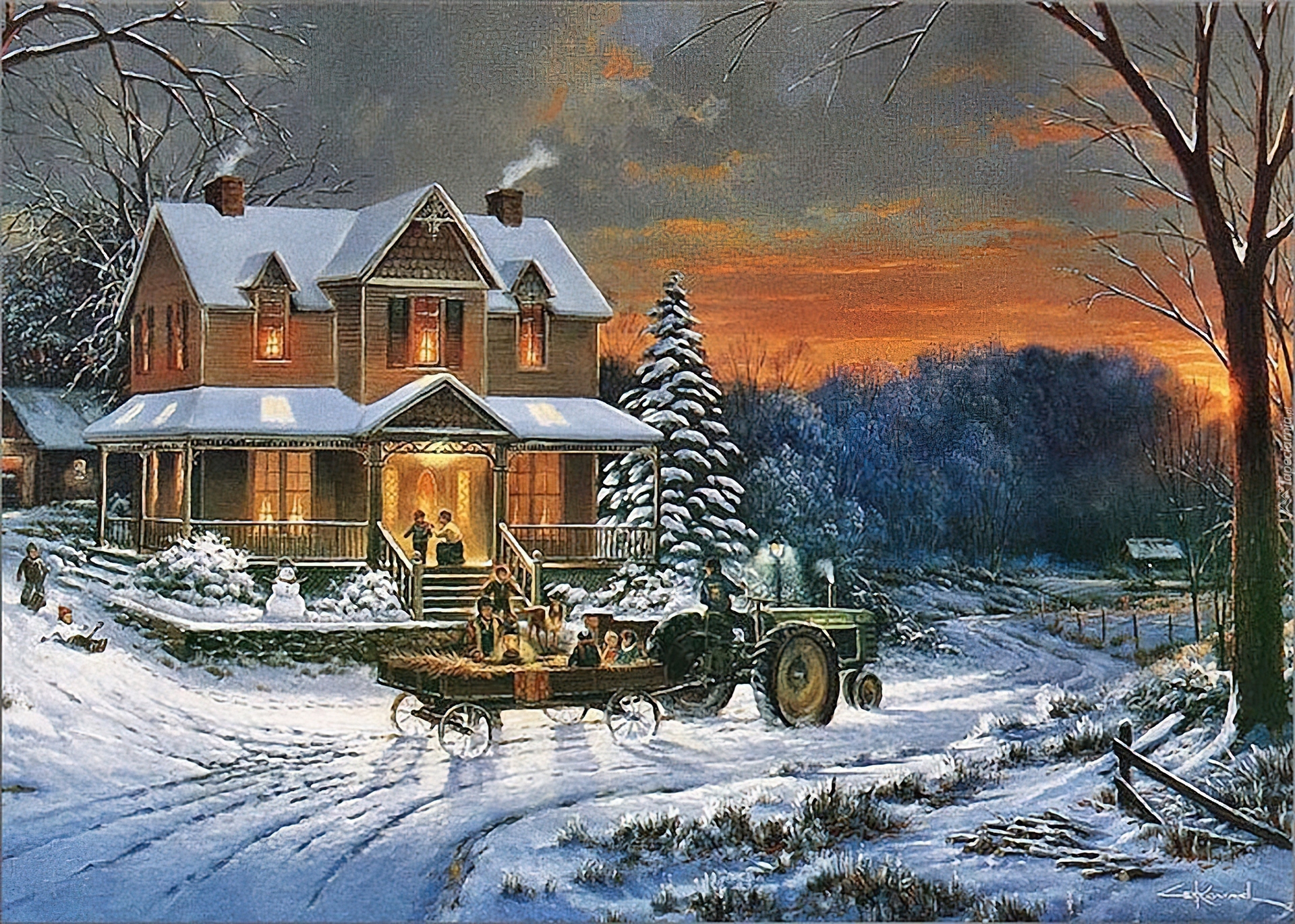 Edytor tapety: Dom, Droga, Zima, Malarstwo
