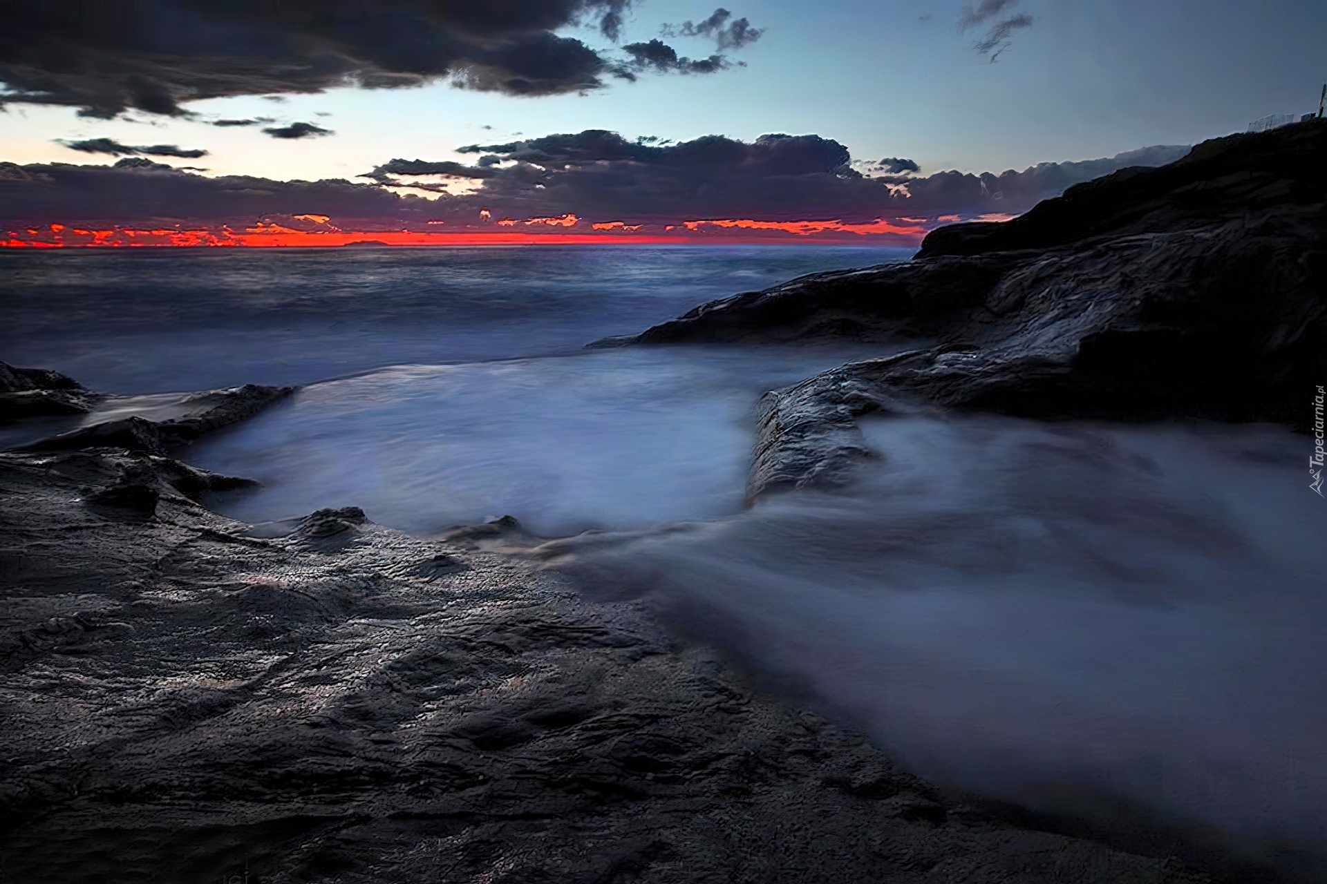 Edytor tapety: Krajobraz, Morze, Skały, Chmury, Zachód, Słońca