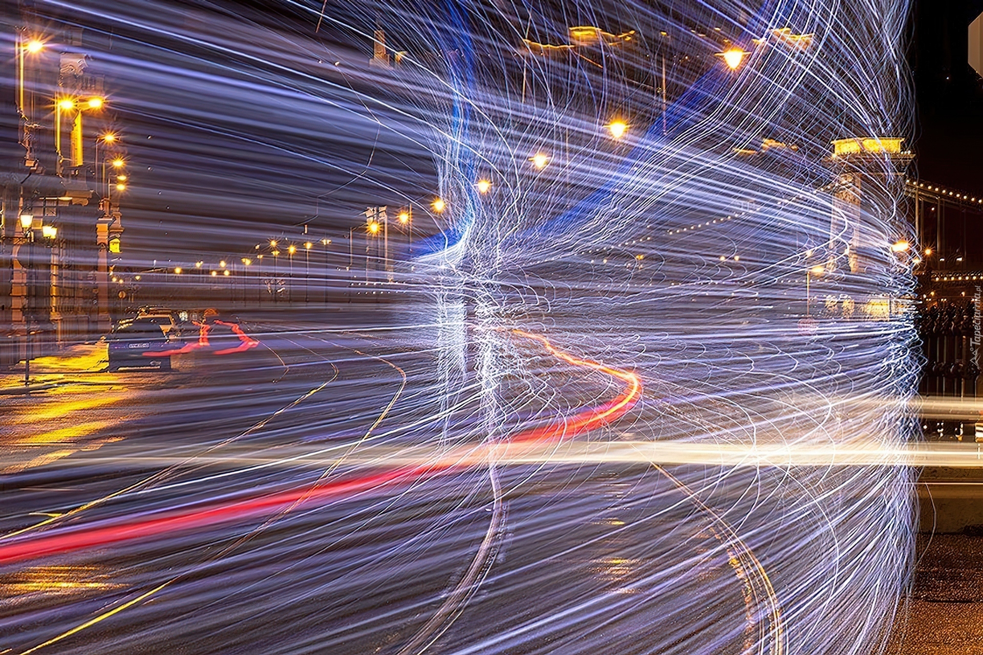 Edytor tapety: Ulica, Wieczór, Refleksy, Świetlne