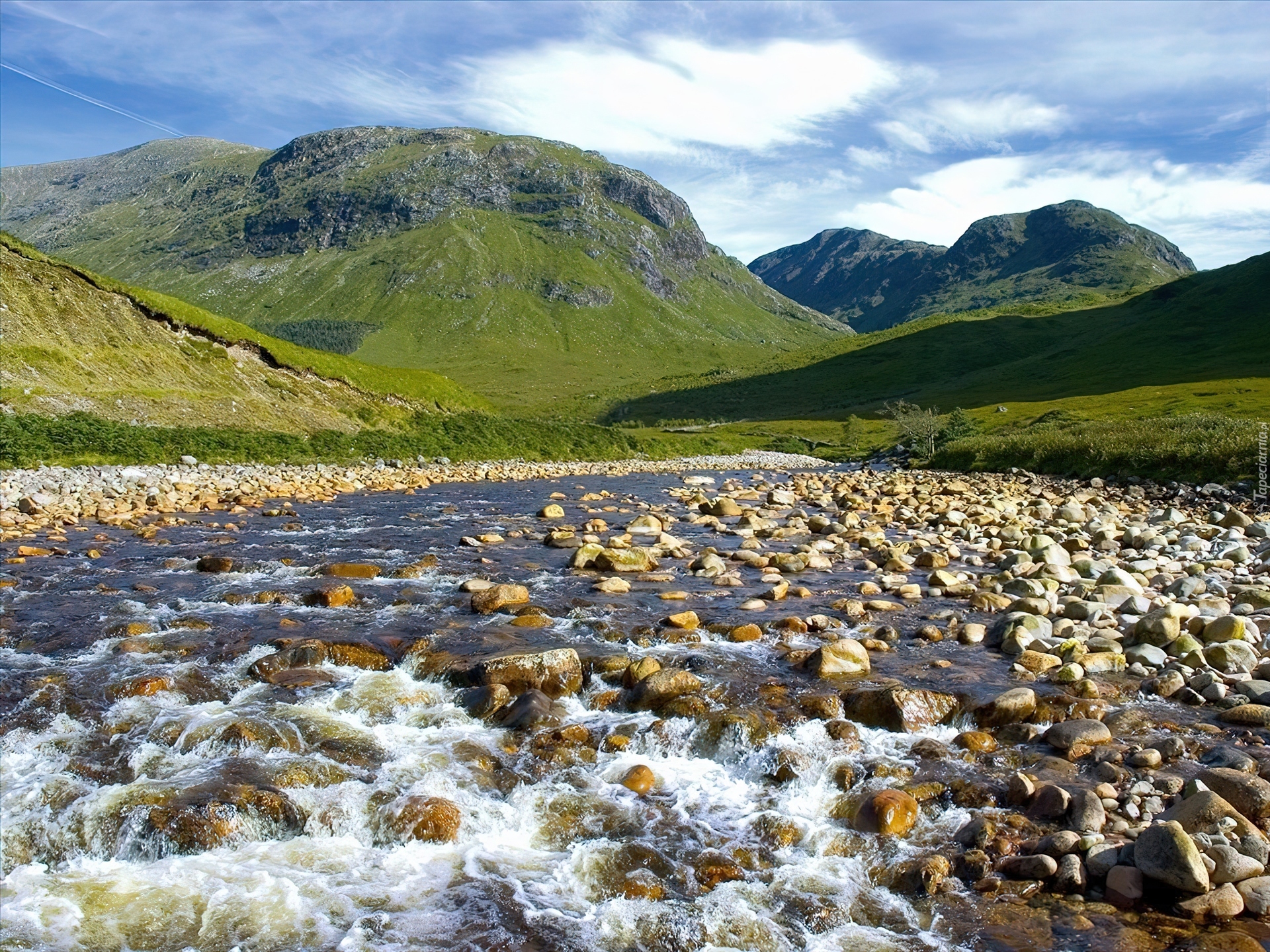 Edytor tapety: Chmury, Góry, Kamienie, Rzeka