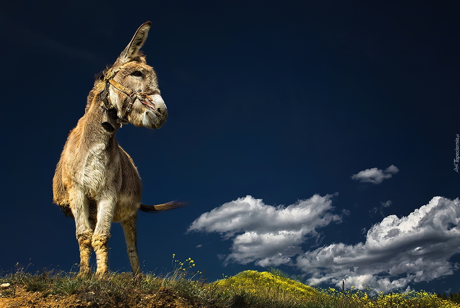 Edytor tapety: Osioł, Chmury, Trawa