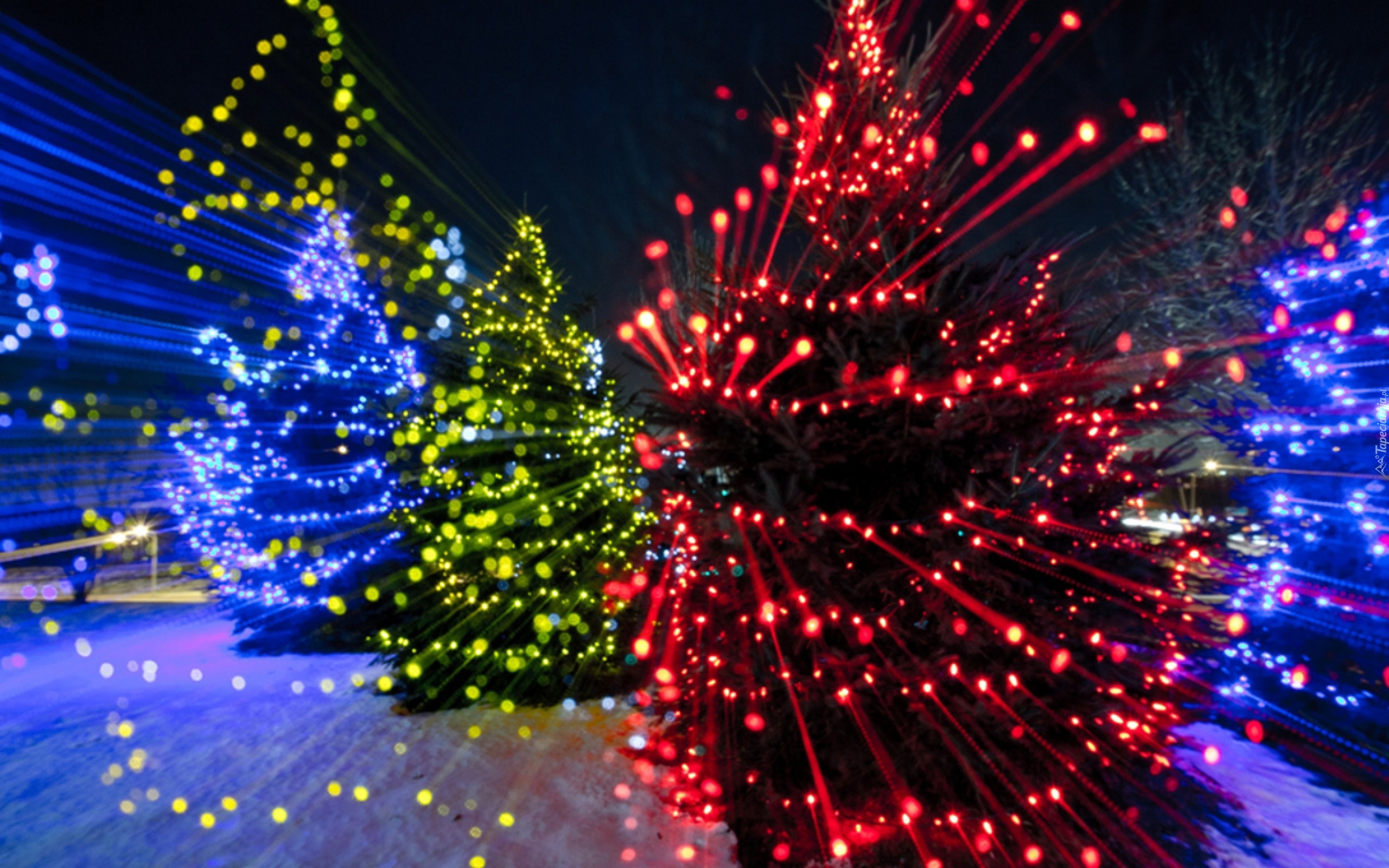 Edytor tapety: Świąteczne, Choinki, Kolorowe, Światełka