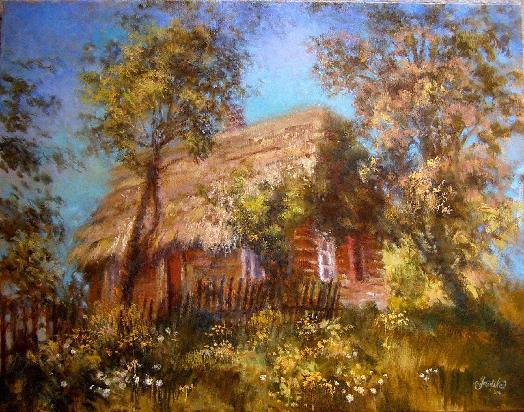 Edytor tapety: Obraz, Krystyna Jasińska, Chatka, Wieś