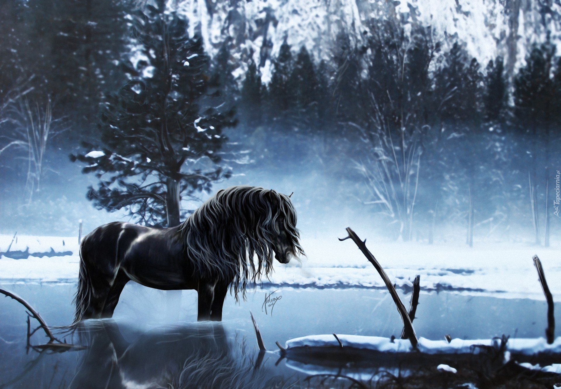 Edytor tapety: Koń, Drzewo, Jezioro