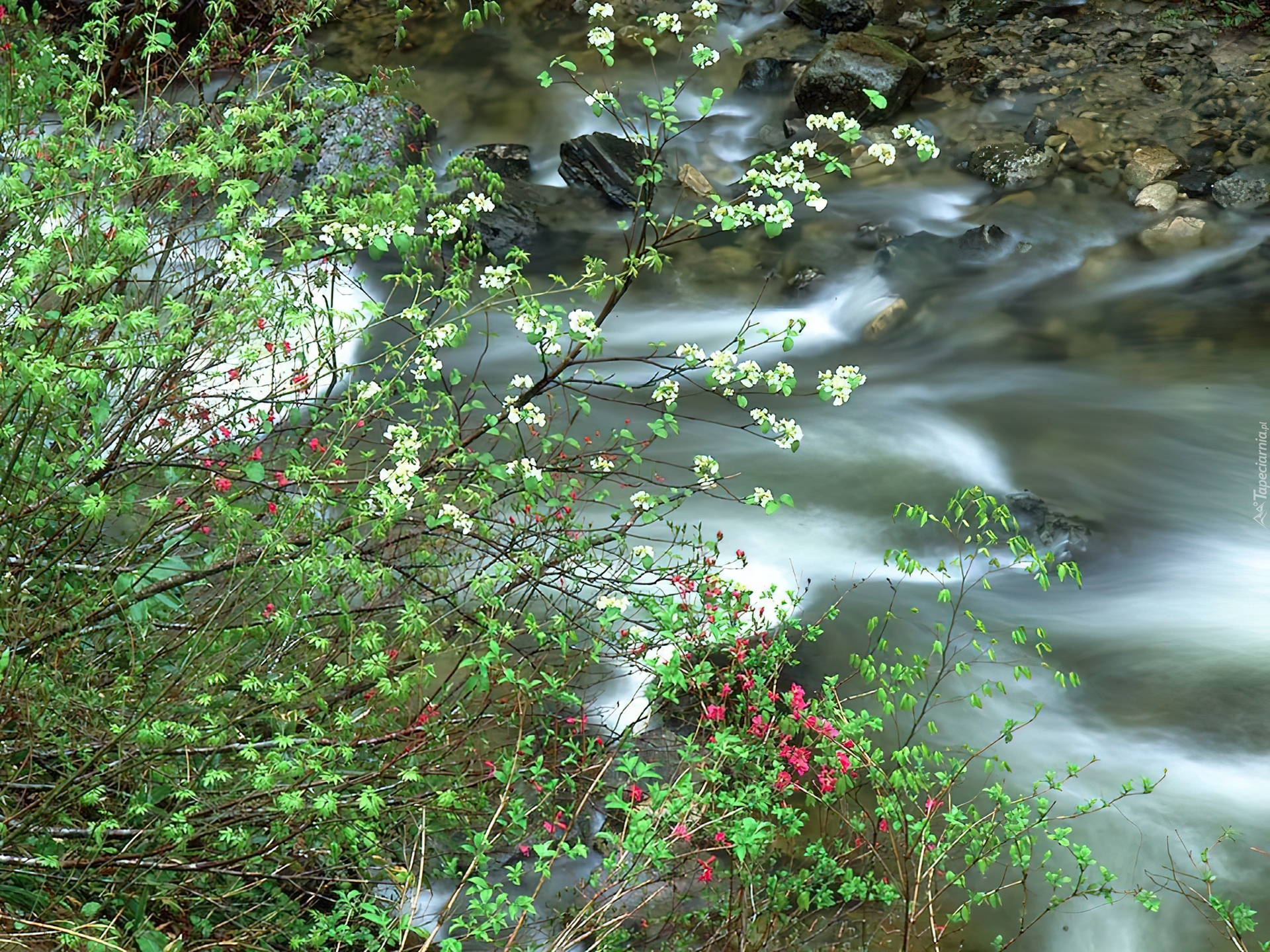 Edytor tapety: Rzeka, Kamienie, Krzaczki, Wiosna