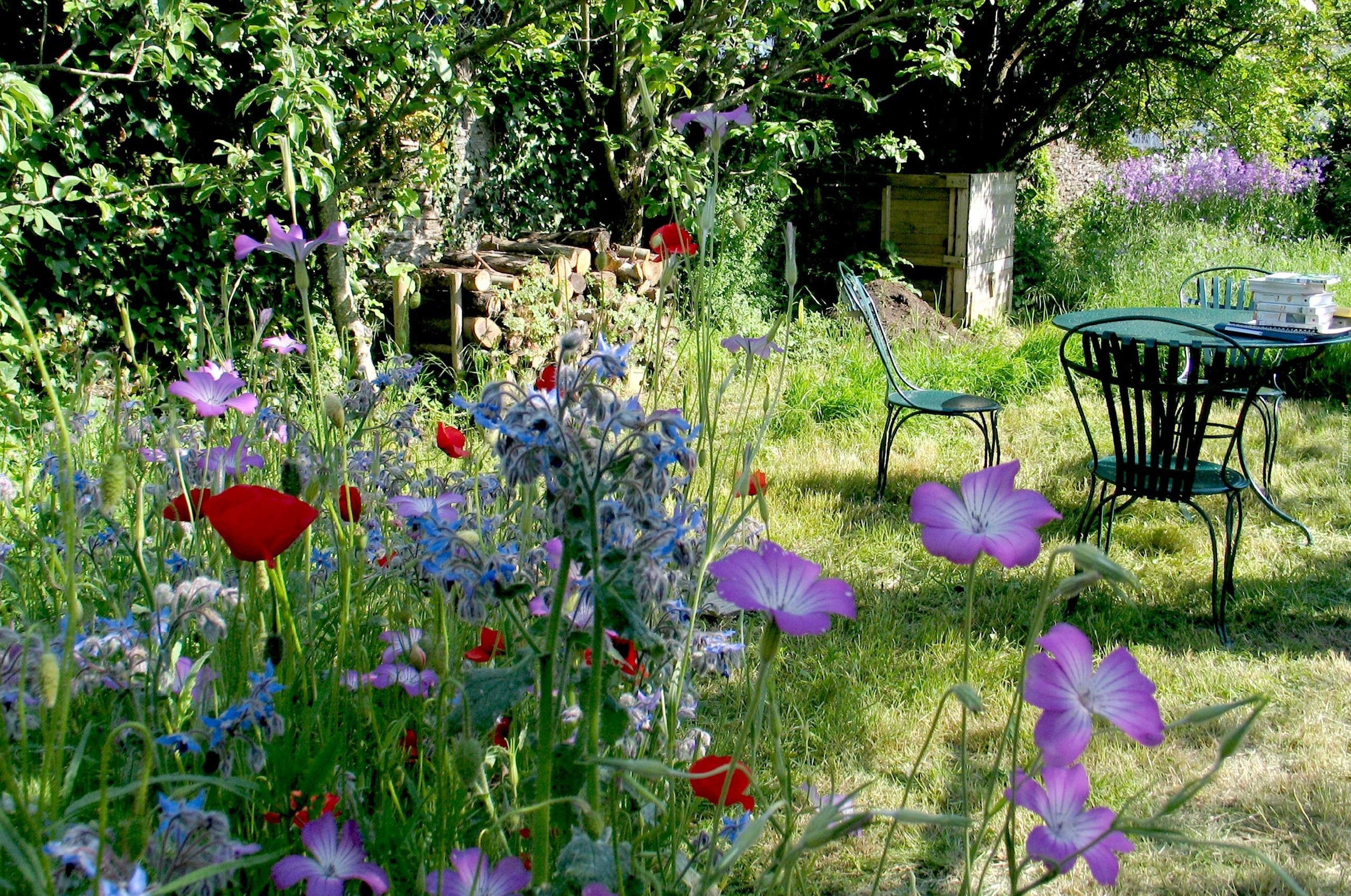Edytor tapety: Ogród, Kwiaty, Stolik, Krzesła