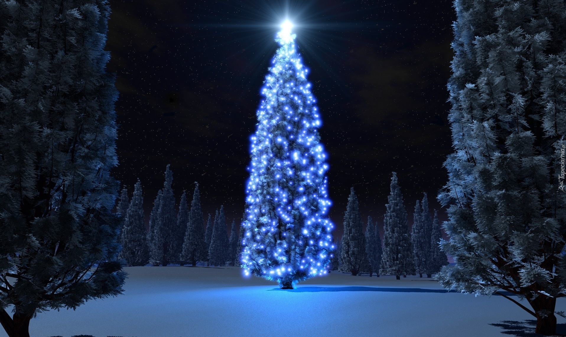 Edytor tapety: Zima, Oświetlona, Choinka, Las