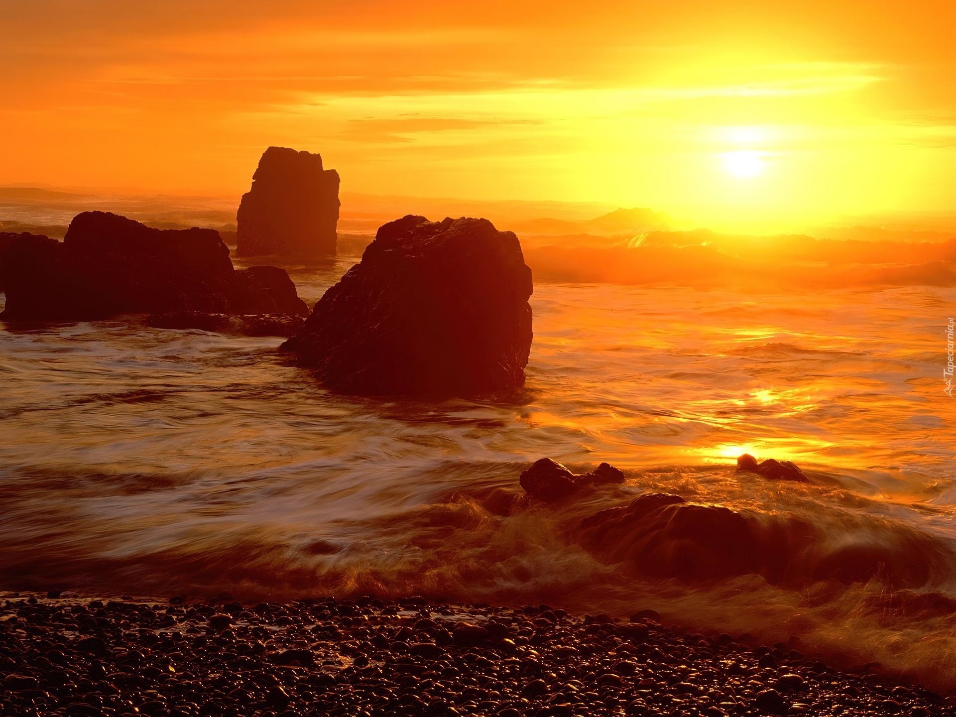 Edytor tapety: Morze, Skały, Zachód Słońca