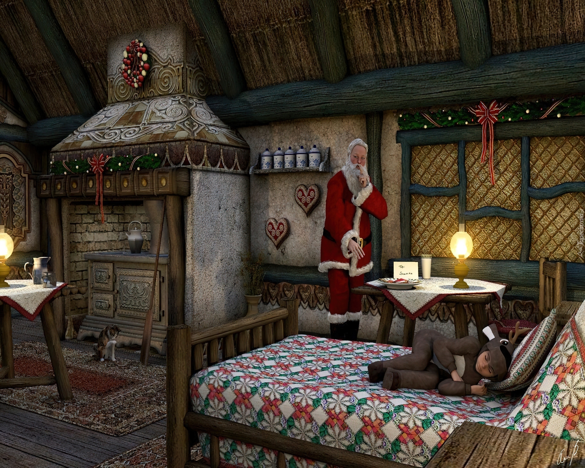 Edytor tapety: Mikołaj, Śpiące, Dziecko, Boże, Narodzenie