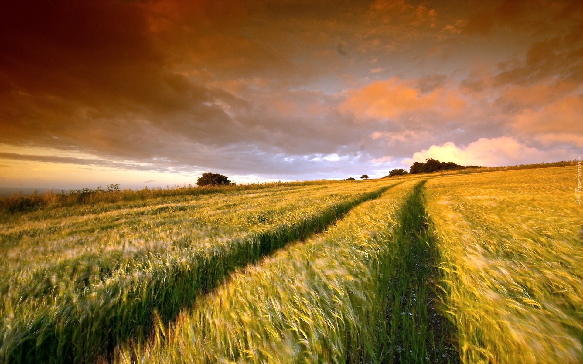 Edytor tapety: Zachód, Słońca, Pola, Zboża