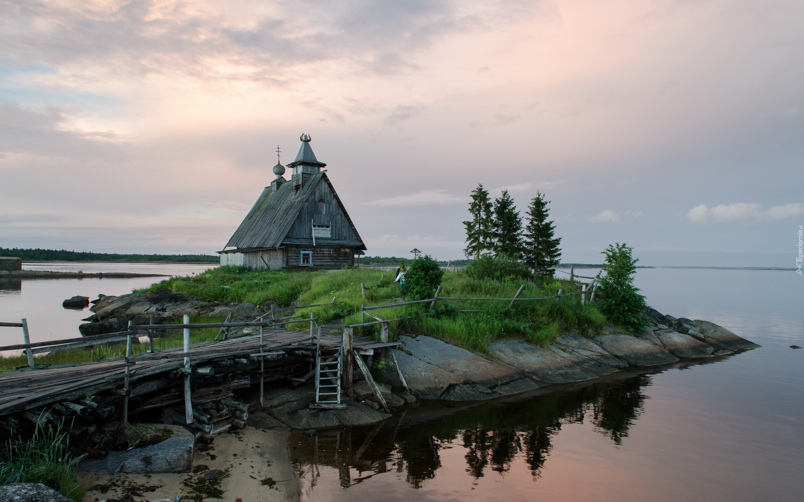 Edytor tapety: Drewniany, Kościół, Na, Wysepce