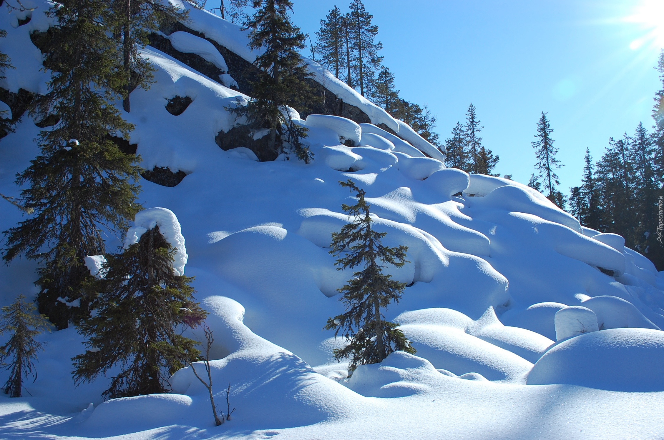 Edytor tapety: Zima, Zbocze, Drzewka