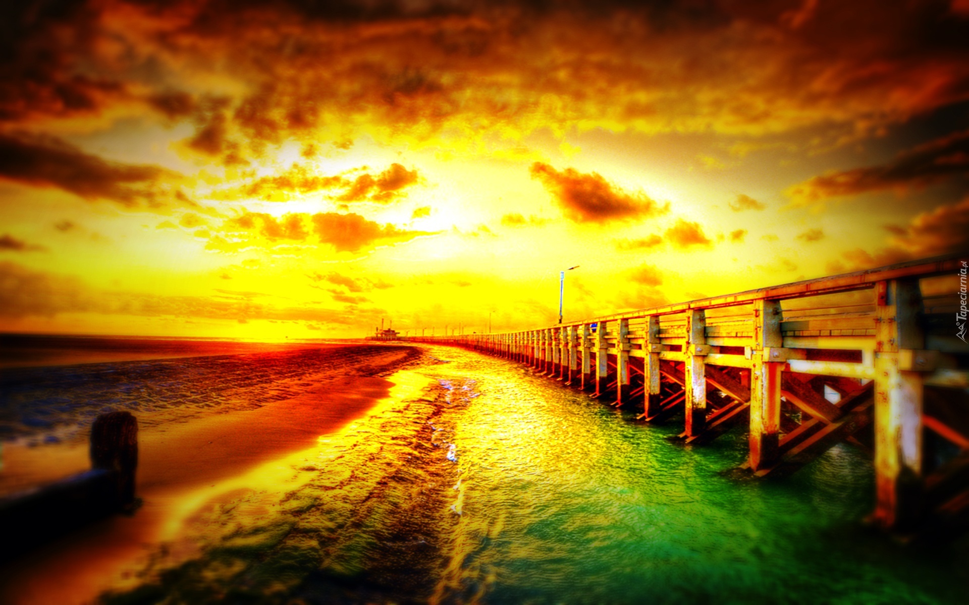 Edytor tapety: Zachód, Słońca, Morze, Molo