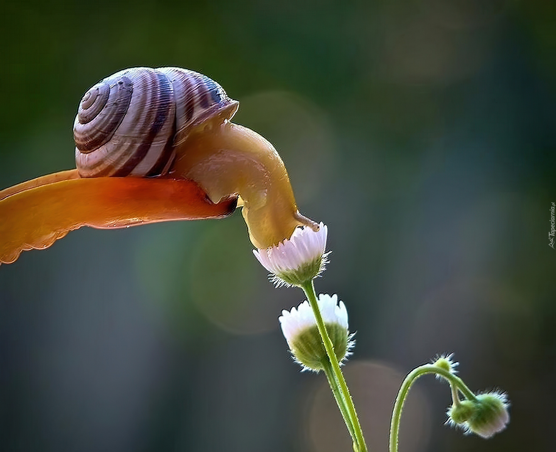Edytor tapety: Zwierzęta, Kwiaty, Ślimak, Stokrotka