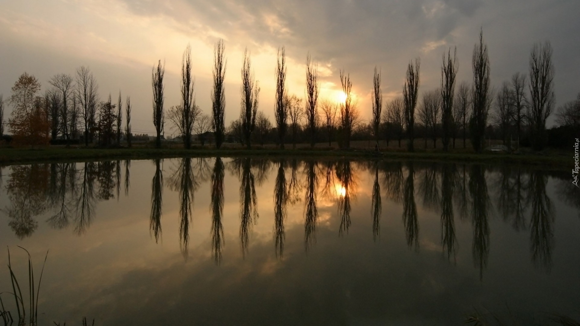Edytor tapety: Chmury, Drzewa, Jezioro, Odbicie