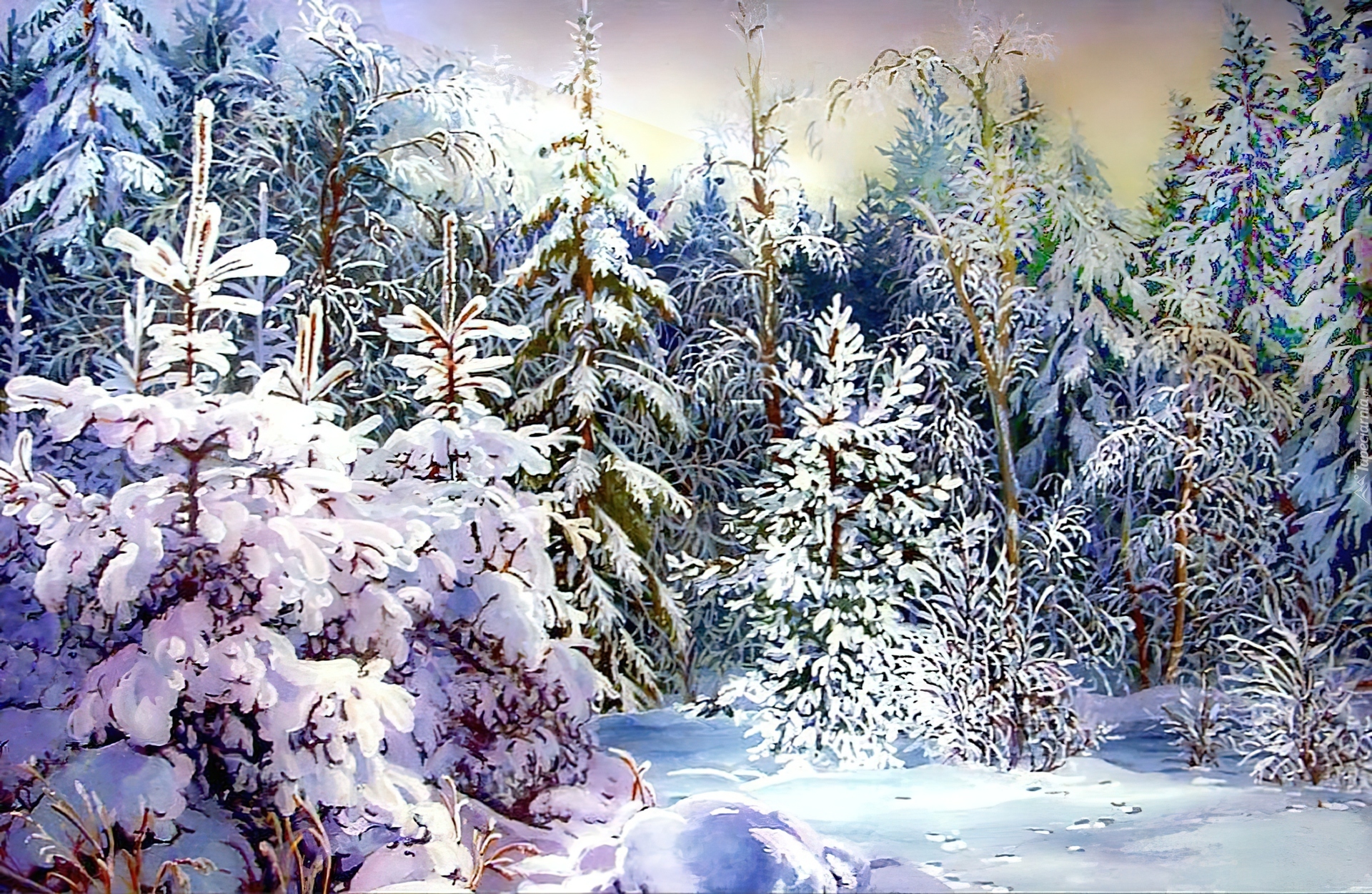 Edytor tapety: Las, Ośnieżone, Choinki, Zima