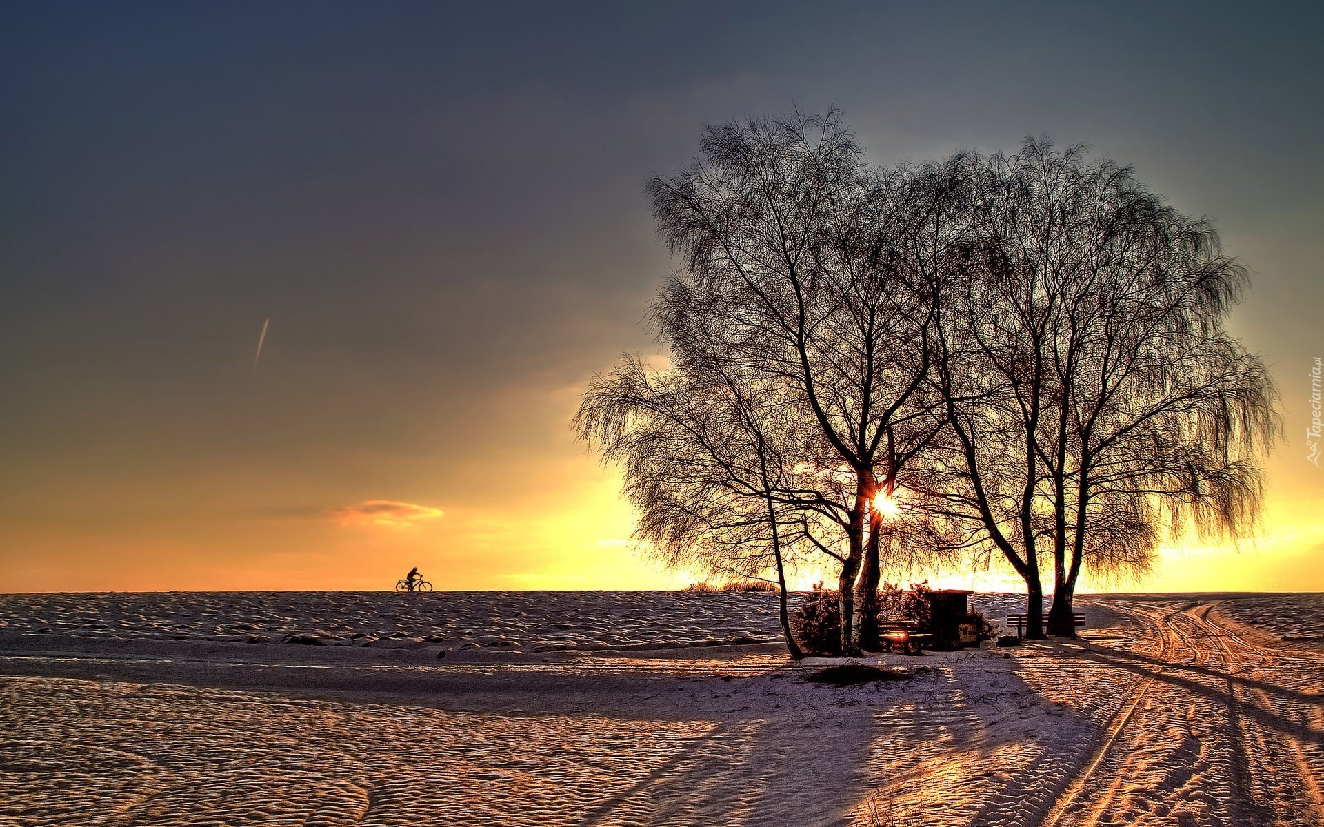 Edytor tapety: Zima, Drzewa, Zachód, Słońca