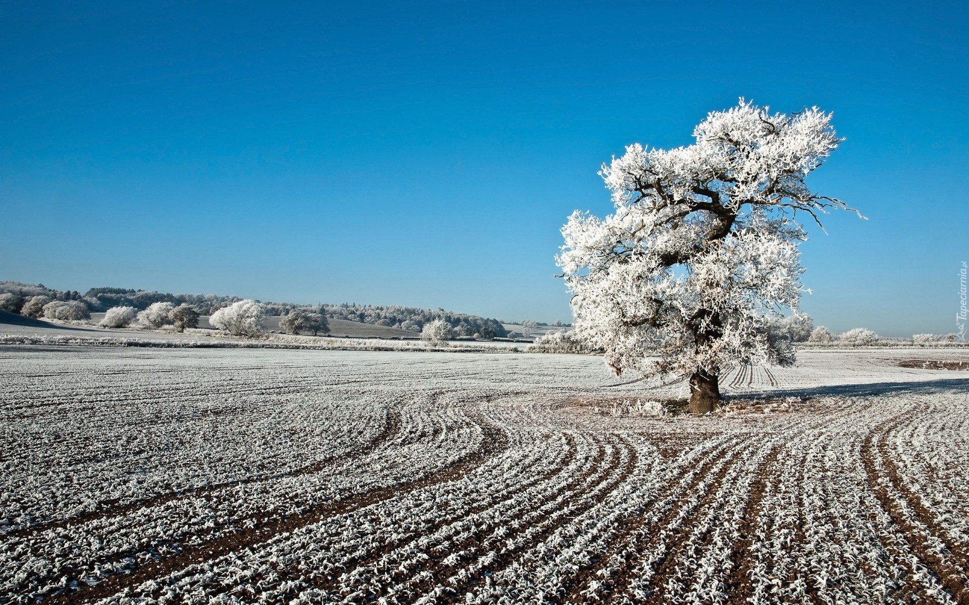 Edytor tapety: Zima, Pola, Drzewa, Niebo