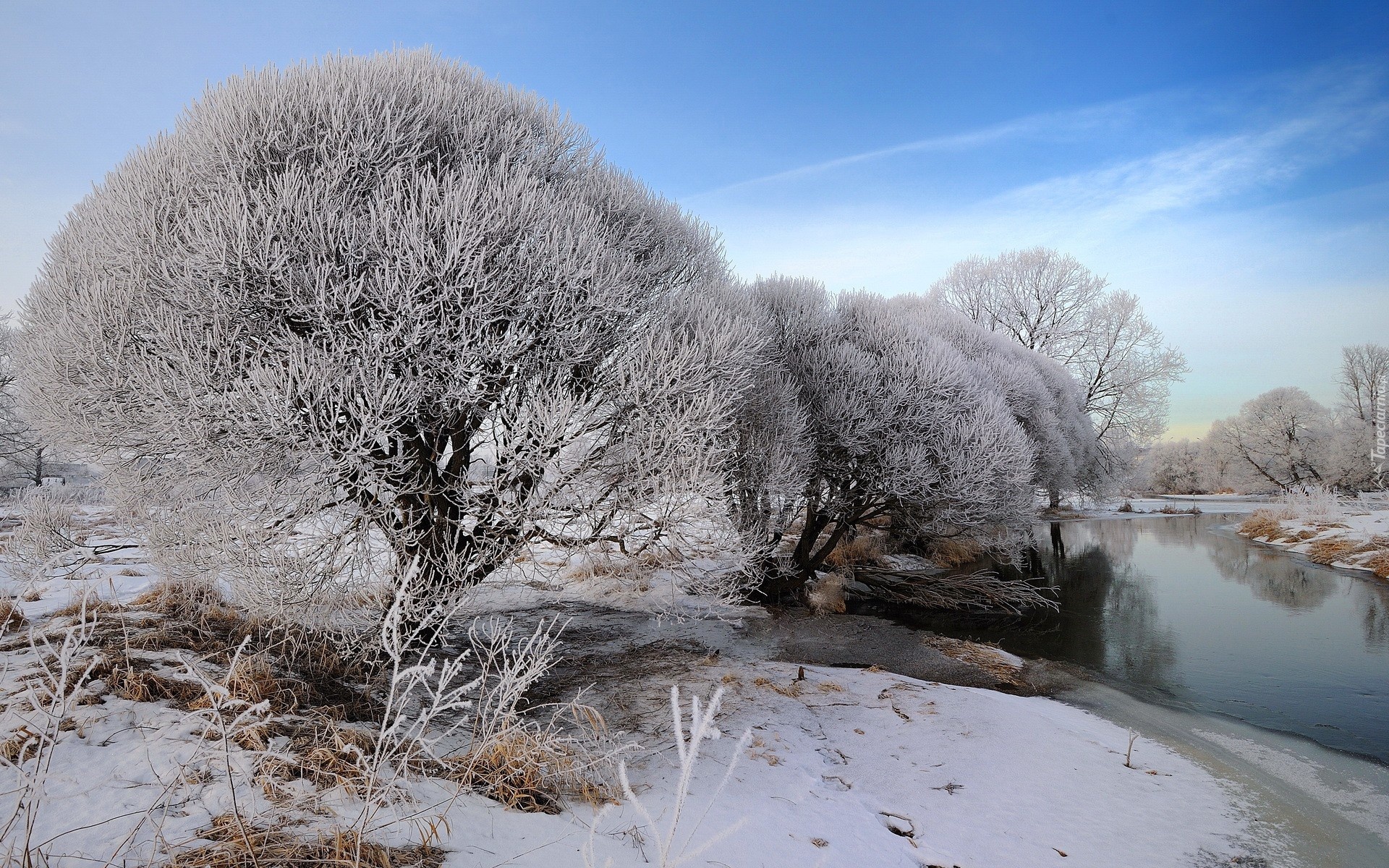 Edytor tapety: Rzeka, Pola, Drzewa, Zima