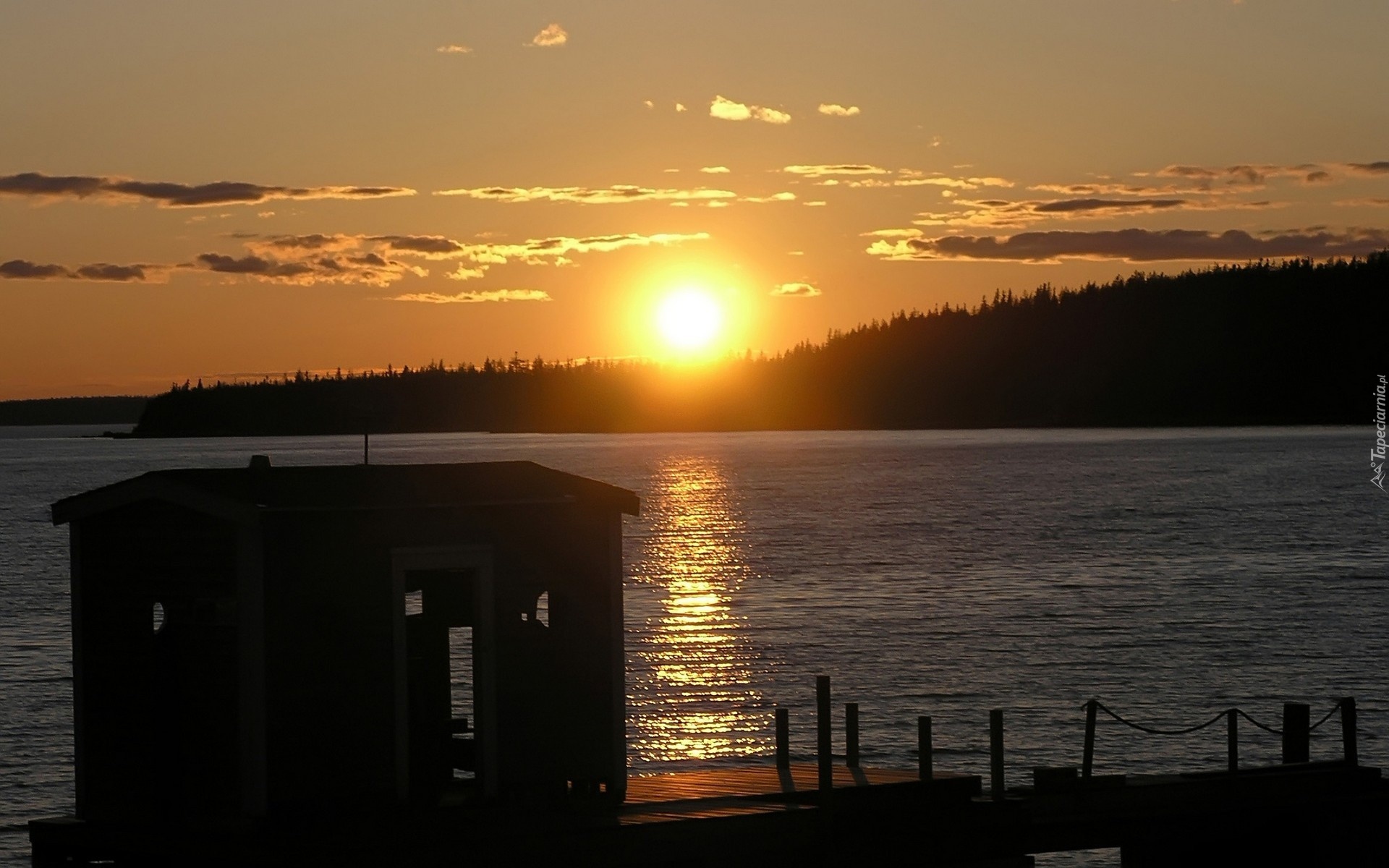 Edytor tapety: Rzeka, Las, Pomost, Zachód, Słońca