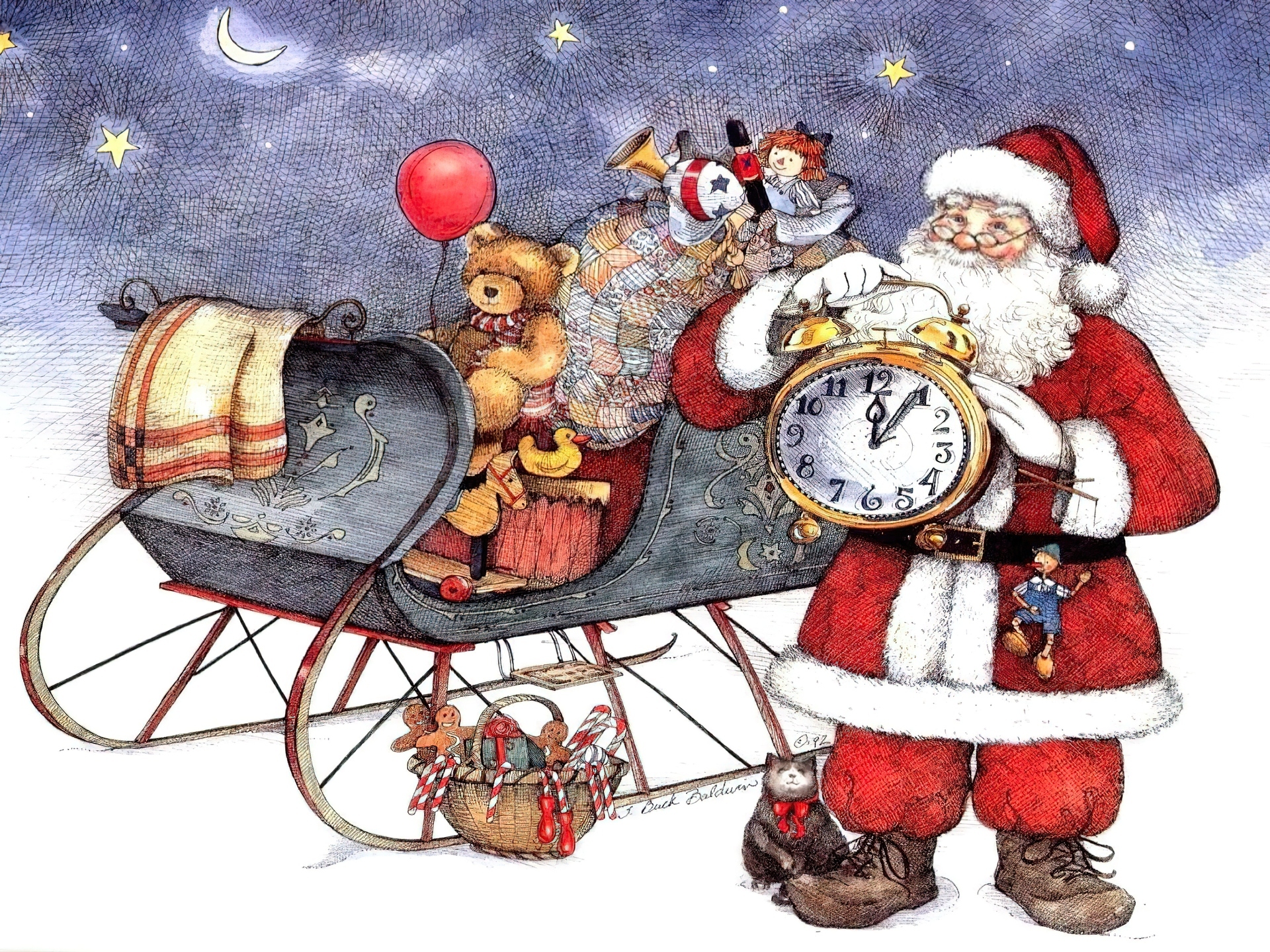 Edytor tapety: Mikołaj, Zegar, Sanie