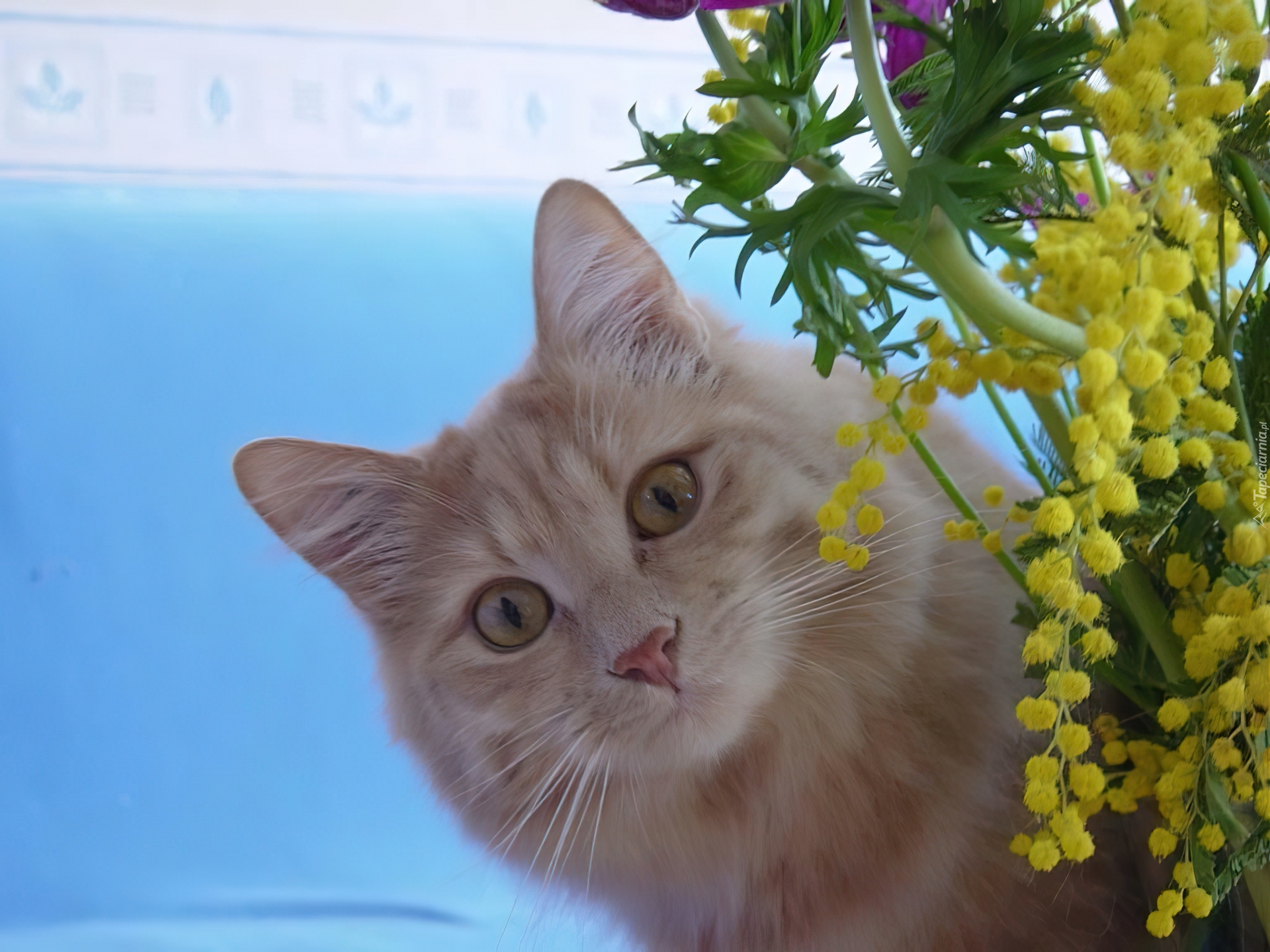 Edytor tapety: Kotek, Kwiatki