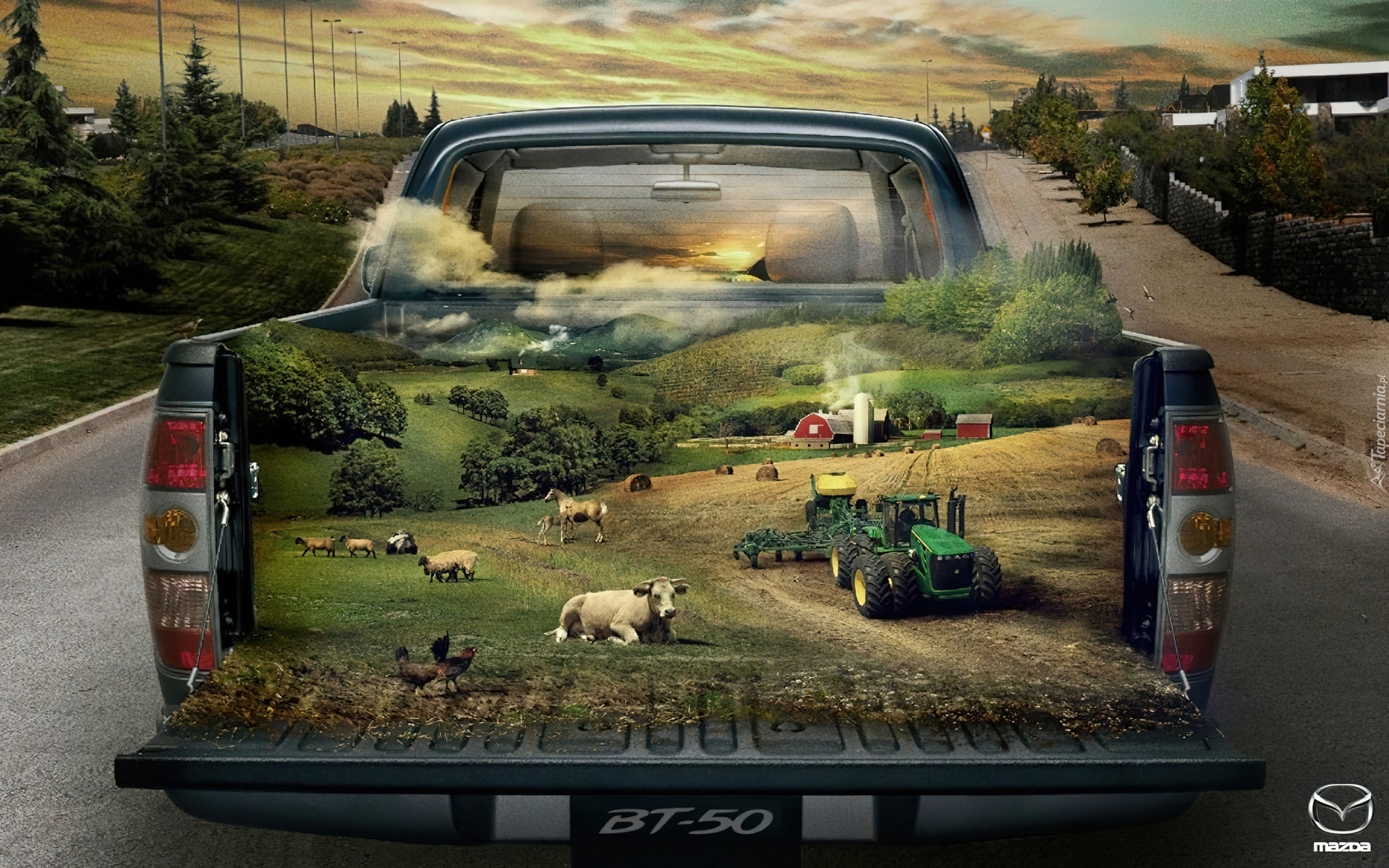 Edytor tapety: Mazda, Pole, Traktor