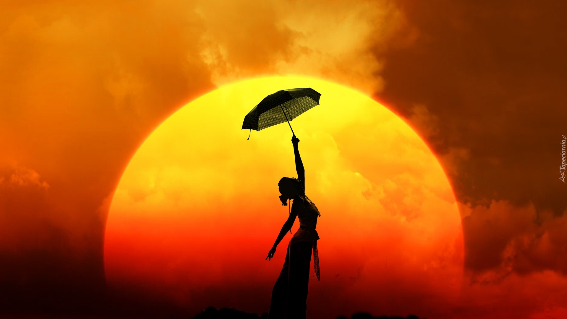 Edytor tapety: Zachód, Słońca, Kobieta, Parasol