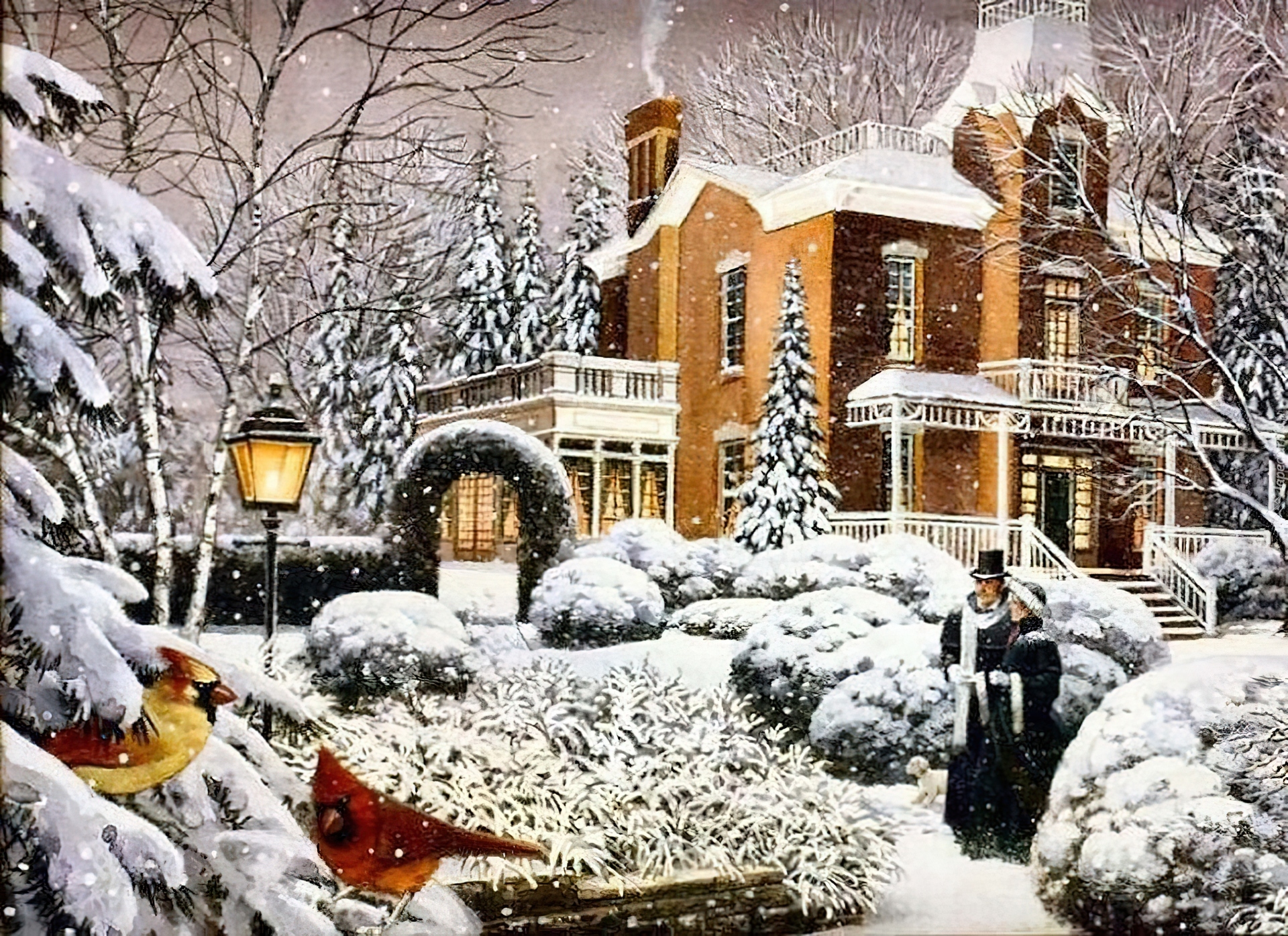 Edytor tapety: Dom, Ogród, Para, Zima