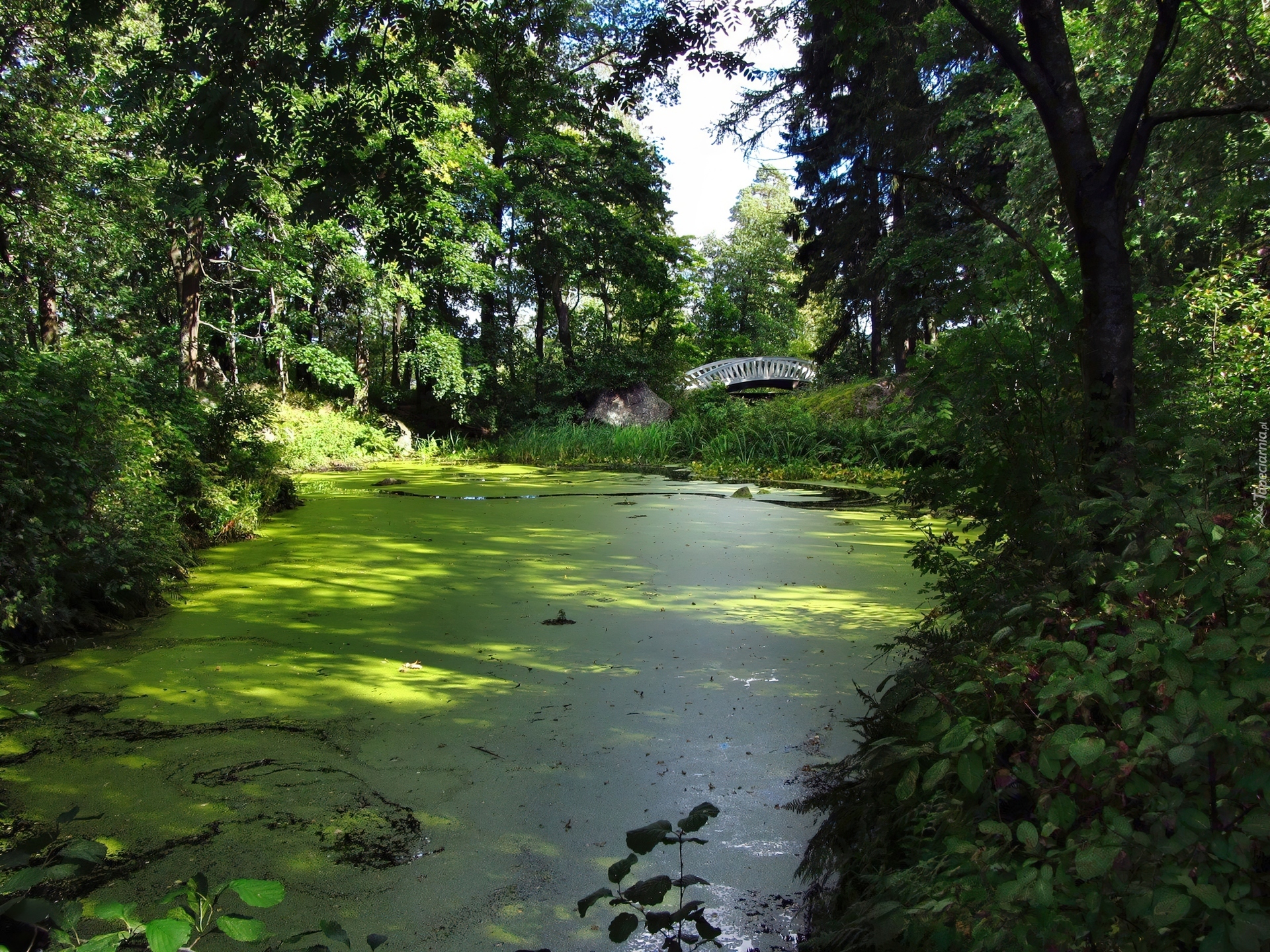Edytor tapety: Park, Staw, Mostek, Lato