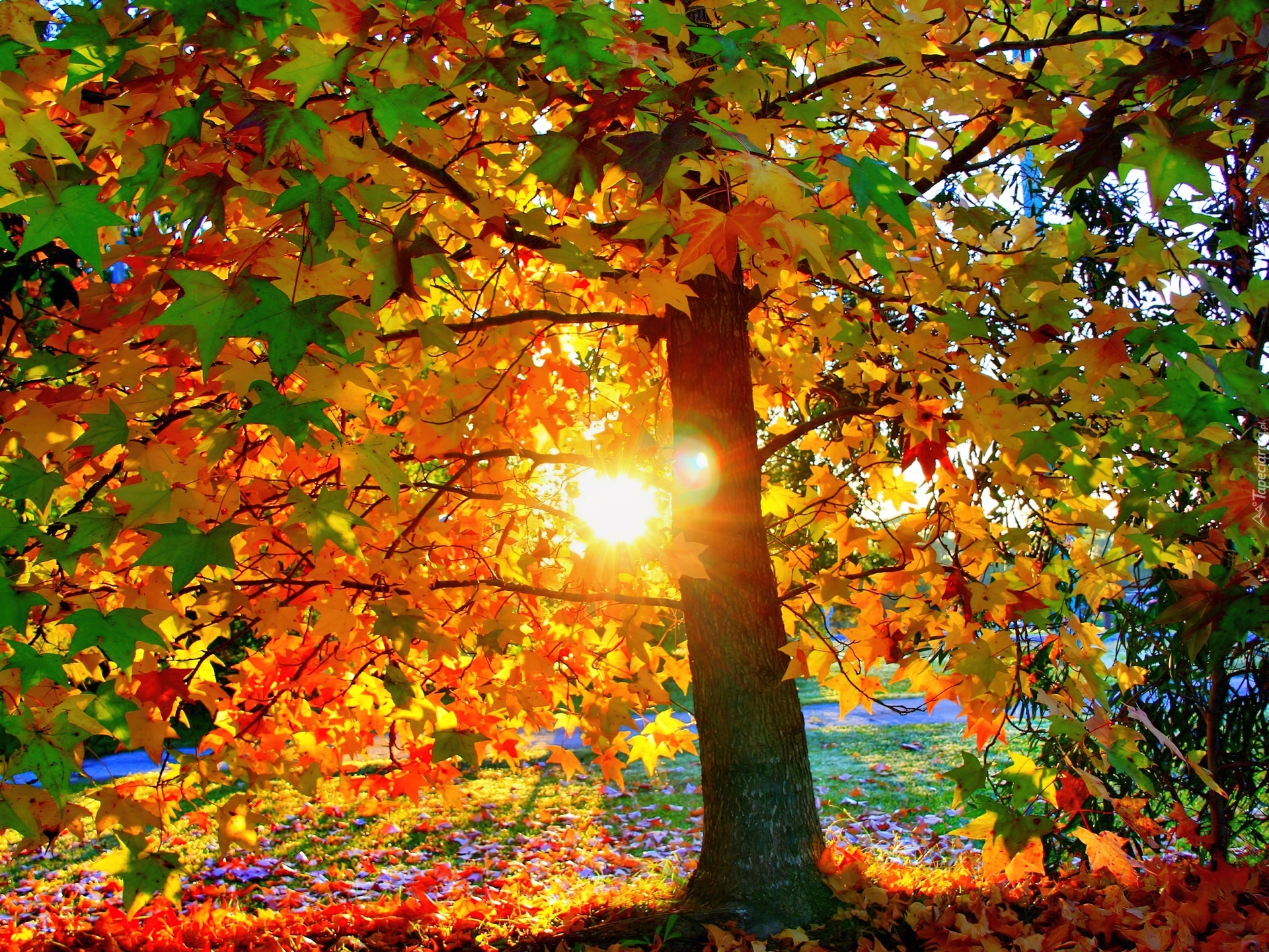 Edytor tapety: Klon, Jesienią, Zachód, Słońca