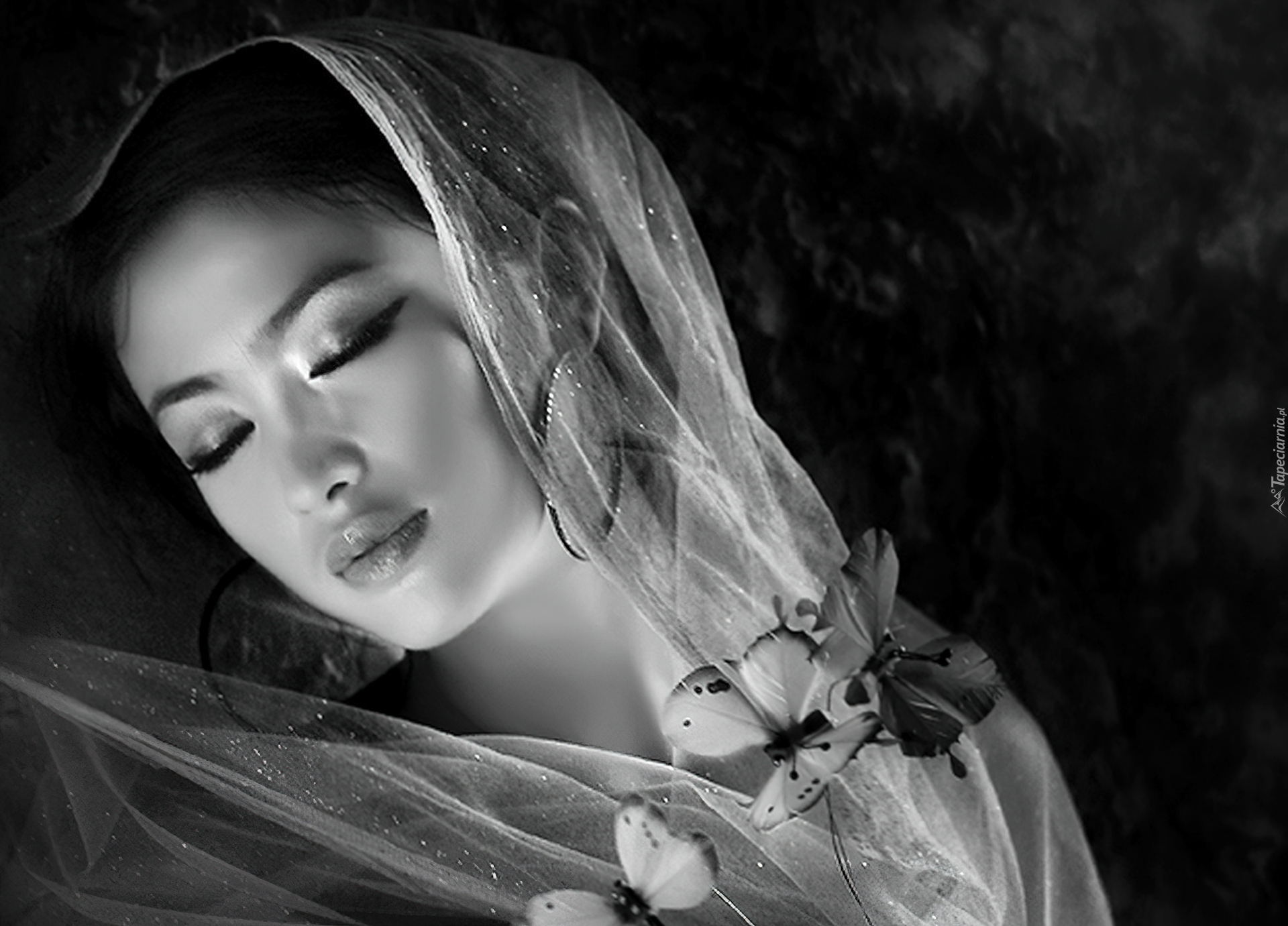 Edytor tapety: Kobieta, Szal, Motyle