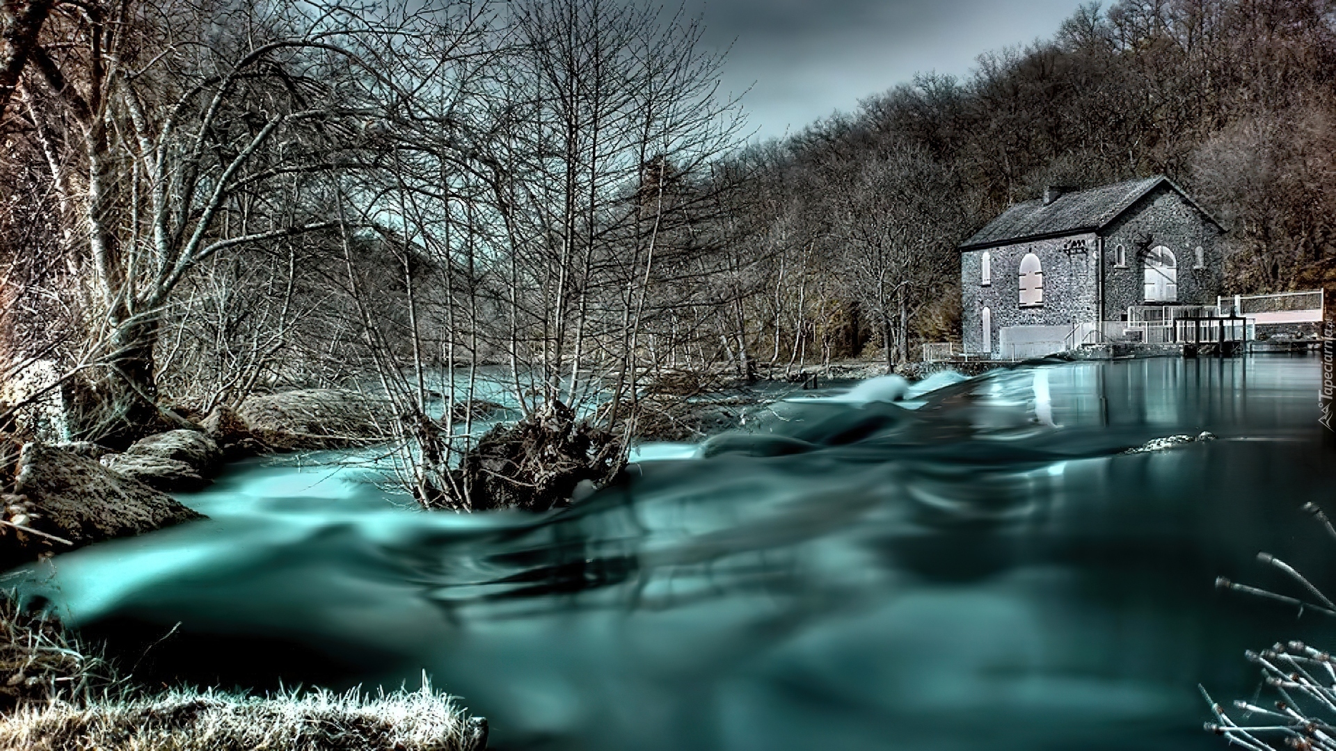 Edytor tapety: Jeziora, Lasy, Drzewa, Domek