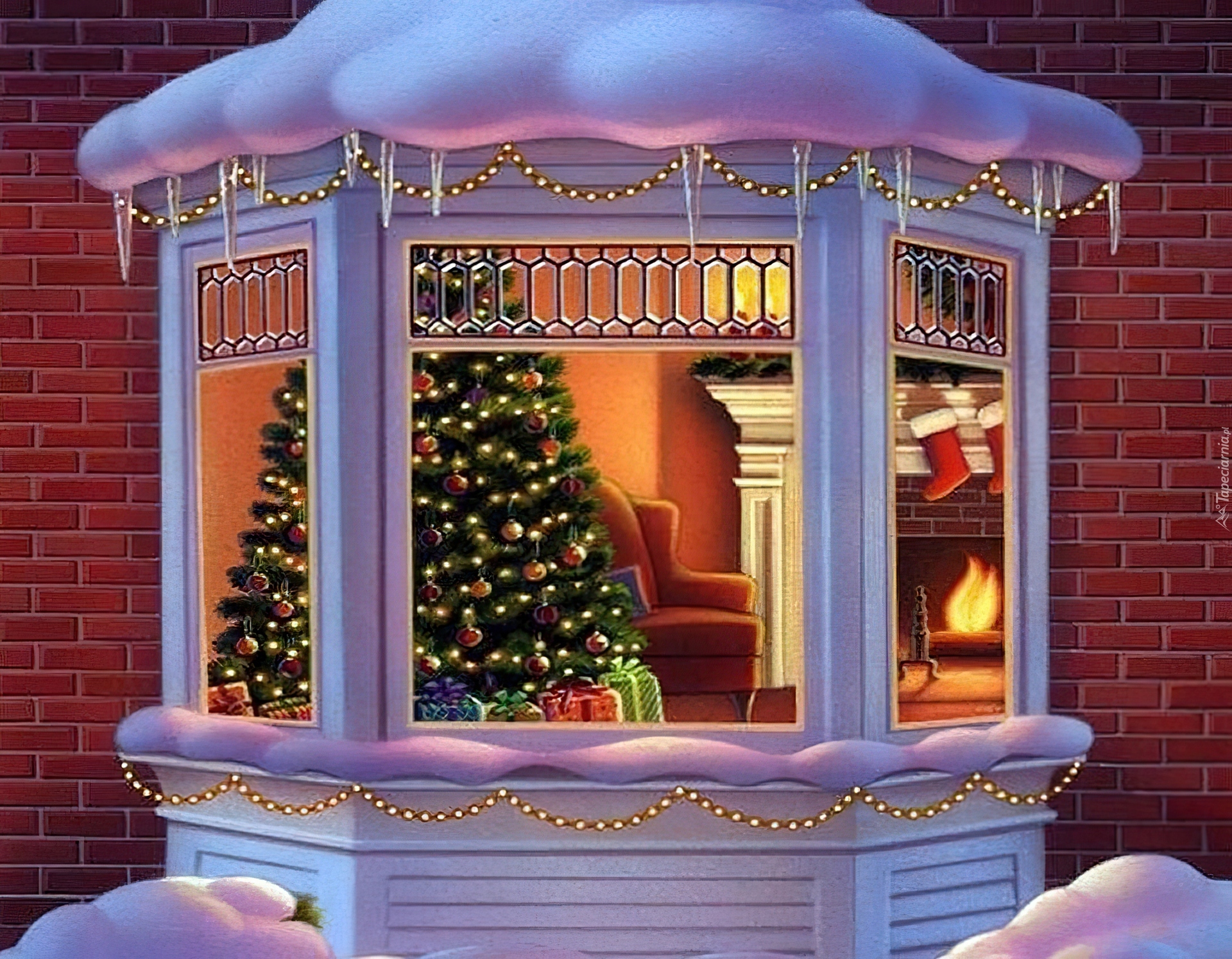 Edytor tapety: Okno, Choinka, Zima, Boże, Narodzenie