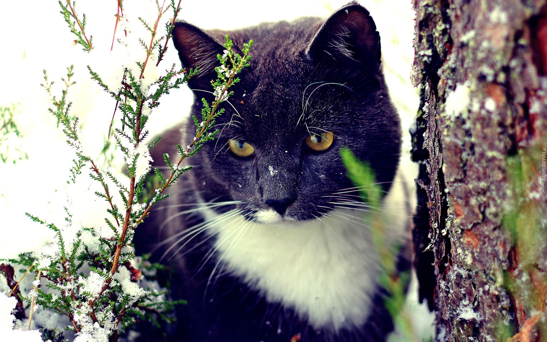 Edytor tapety: Kot, Drzewo, Zima