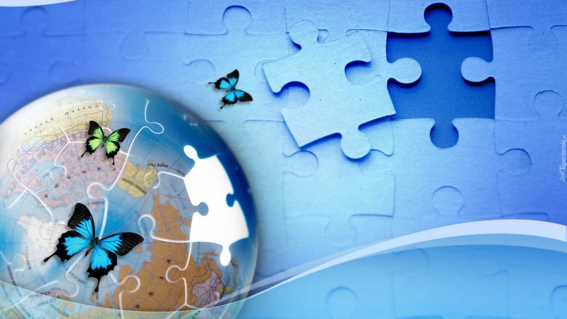 Edytor tapety: Globus, Motylki, Puzzle, Grafika