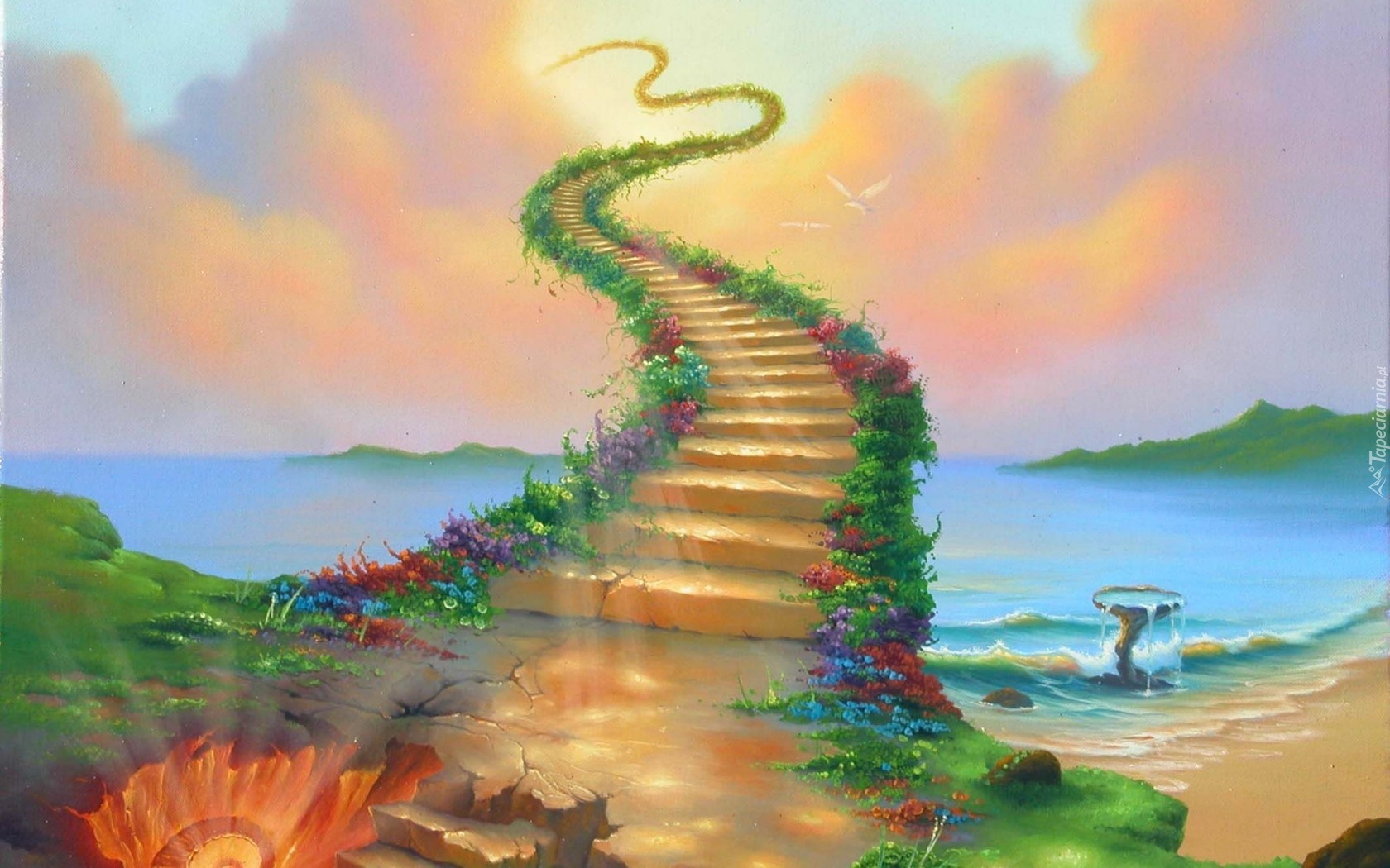 Edytor tapety: Góry, Morze, Schody